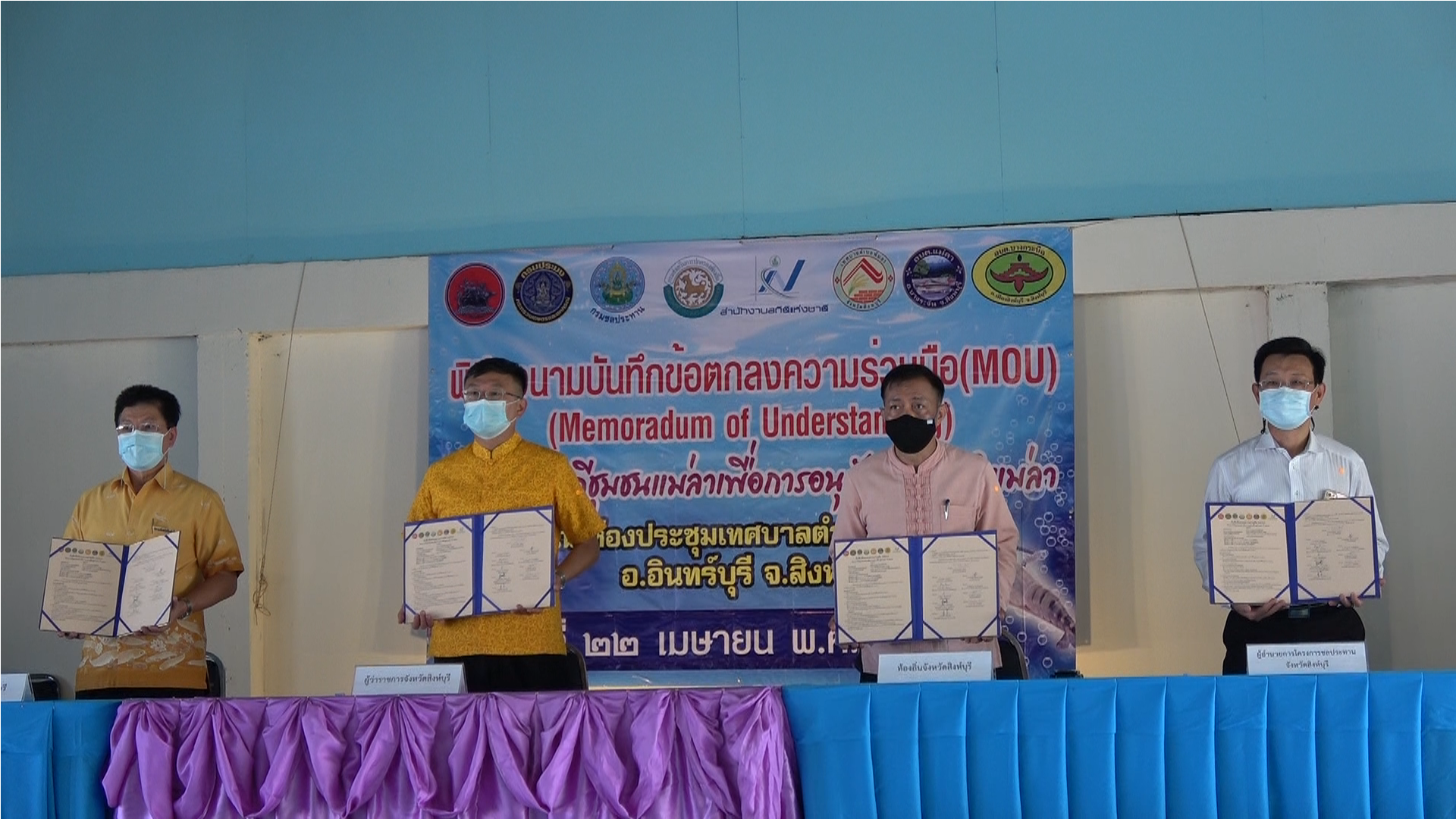 นายชำนาญวิทย์ เตรัตน์ ผู้ว่าราชการจังหวัดสิงห์บุรี พร้อม ดร.ประดิษฐ์ ศรีภัทรประสิทธิ์ ประมงจังหวัดสิงห์บุรี สถิติจังหวัดสิงห์บุรี ชลประทานจังหวัดสิงห์บุรี นายอำเภออินทร์บุรี ส่งการปกครองท้องถิ่นจังหวัดสิงห์บุรี เทศบาลทับยา อบต.แม่ลา อบต.บางกระบือ ผู้ใหญ่บ้าน กลุ่มผู้ใช้น้ำและผู้ใช้ประโยชน์ทรัพยากรสัตว์น้ำ ร่วมลงนามบันทึกข้อตกลงความร่วมมือ MOU ในโครงการวิถีชุมชนแม่ลาเพื่อการอนุรักษ์ฟื้นฟูลำแม่ลา ปี 2564 ณ เทศบาลทับยา อำเภออินทร์บุรี เพื่อเป็นการอนุรักษ์ฟื้นฟูลำแม่ลา แก้ไขปัญหาเยียวยาและฟื้นฟูเศรษฐกิจและสังคมที่ได้รับผลกระทบโควิด-19