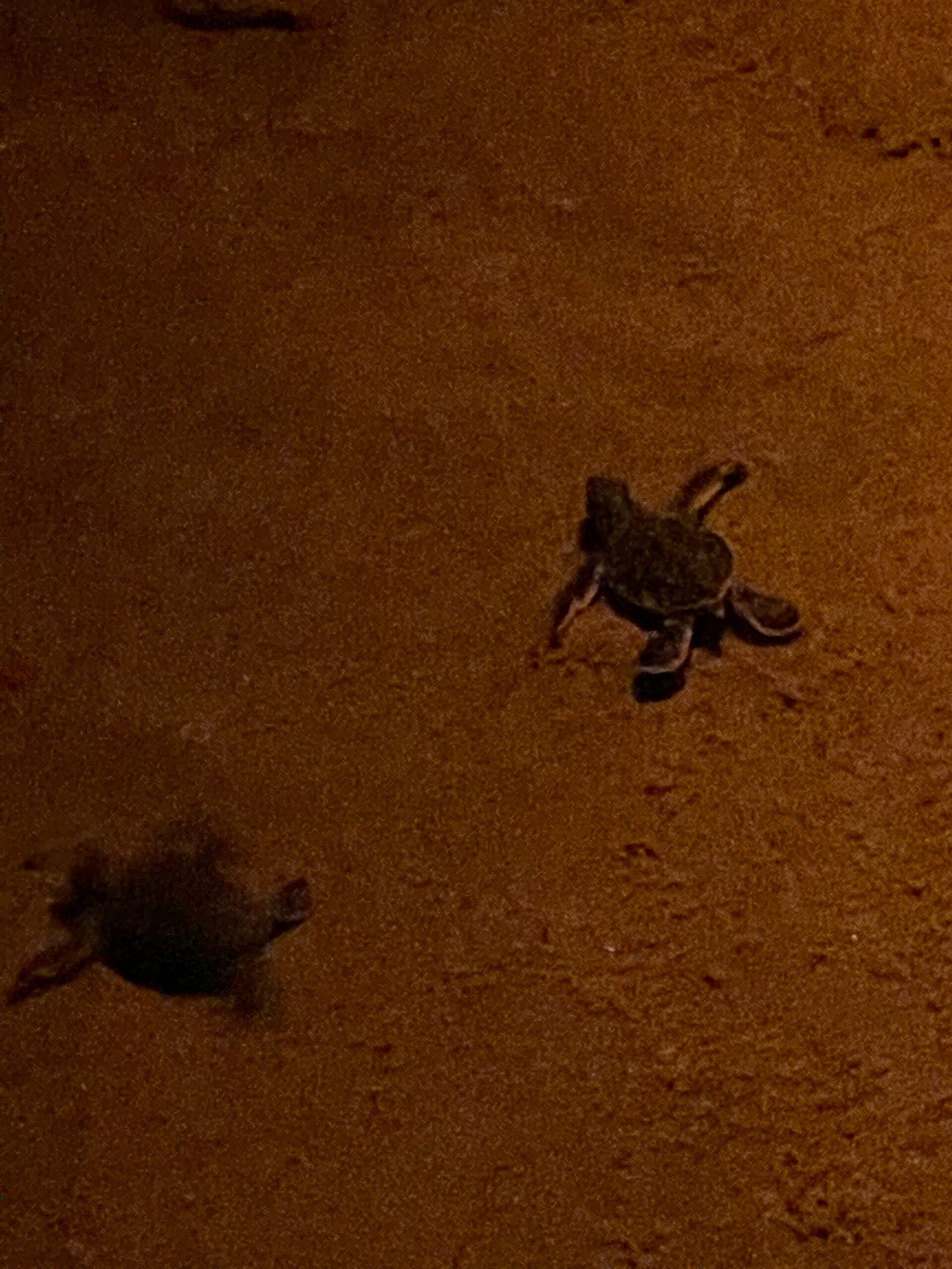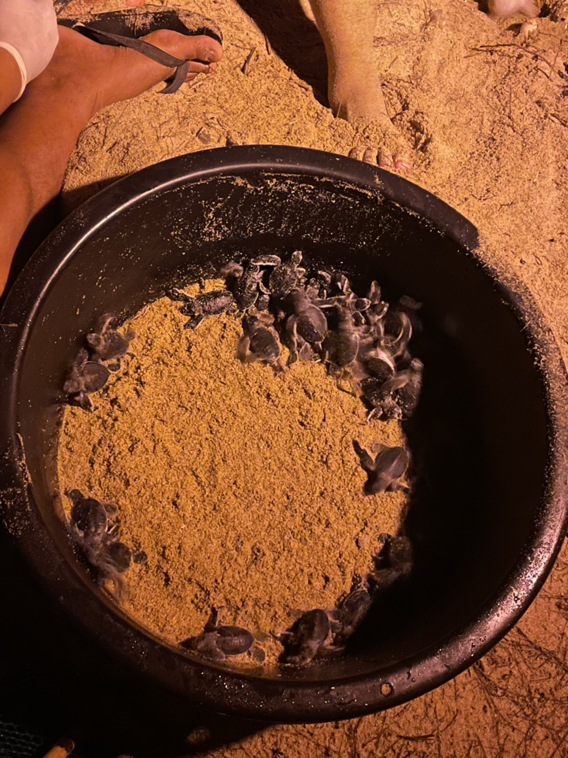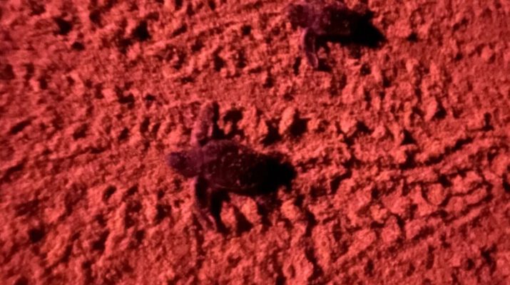 ช่วงจังหวะเมื่อถึงเวลาที่เต่าฟักออกจากไข่ แต่ละตัวต่างทยอยเดินออกจากหลุมที่แม่ได้มาวางไข่ไว้ โดยรังที่ 1 มีลูกเต่าทยอยเดินออกมานับแล้ว ทั้งหมด จำนวน 63 ตัว จาก 116 ฟอง และรังที่ 2 นับลูกเต่าได้ 78 ตัว จากไข่ทั้งหมด 116 ฟอง รวมไข่ทั้ง 2 รัง รวม 232 ฟอง มีลูกเต่าเดินลงสู่ทะเล 141 ตัว ทำให้ตื่นตาตื่นใจกับเจ้าหน้าที่ที่ไปรอเฝ้าดู เพื่อไม่ให้สุนัขหรือสัตว์อื่นเข้ามาทำร้าย พร้อมทั้งขุดทรายทำร่องให้ลูกเต่าเดินลงสู่ทะเล โดยมีลูกเต่าที่ฝักแล้วตายประมาณ 85 ตัว และที่ยังไม่ฟักอีก 6 ฟองจึงกลบไว้ให้ฟักต่อไป