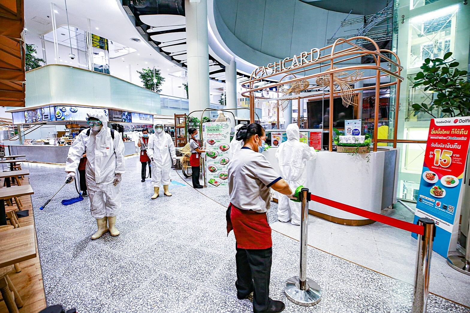 ทันที – ปฏิบัติการ Extra deep cleaning ทั่วทั้งศูนย์การค้า ด้วยน้ำยาฆ่าเชื้อพิเศษแบบเข้มข้น ซึ่งเป็นหนึ่งในน้ำยาเคมีภันฑ์ไม่กี่ชนิด ที่ได้รับการรับรองจากสถาบันระดับโลก CBC approved (Center for Biocide Chemistries) สามารถฆ่าเชื้อ COVID-19 ได้ และรับรองโดยหน่วยงานคุ้มครองสิ่งแวดล้อมของสหรัฐอเมริกา (Environmental Protection Agency – EPA) มีคุณสมบัติเป็น Food Grade ที่ใช้ในอุตสาหกรรมอาหาร โดยเป็นผู้ผลิตเคมีภัณฑ์มาตรฐานระดับโลกที่ได้รับการยอมรับในอุตสาหกรรมอาหารทั่วโลก พร้อมมีมาตรการกักตัวผู้เกี่ยวข้องที่ชัดเจน นอกจากนี้ ร้านอาหารทุกร้านจะต้องทำความสะอาดโต๊ะทันทีภายใน 5 นาที ด้วยน้ำยาฆ่าเชื้อหลังลูกค้าใช้บริการเรียบร้อยแล้ว