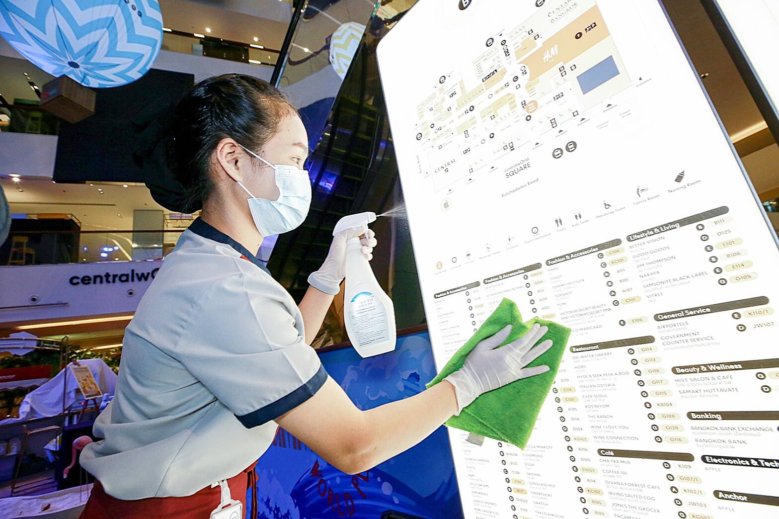 ป้องกันทุกวัน 100% สะอาดตลอดเวลา – มั่นใจสูงสุดด้วยการทำ Big cleaning ลงลึกทุกรายละเอียด และฉีดพ่นฆ่าเชื้อเชิงรุกหลังศูนย์ปิดทุกวัน เป็นประจำอย่างต่อเนื่อง เน้นย้ำเป็นพิเศษในจุดที่มีการสัมผัสร่วมสูง รวมถึงเพิ่มความถี่ในการทำความสะอาดทุกจุดสัมผัสทุกๆ 30 นาที และในห้องน้ำทุกๆ 1 ชั่วโมง, รณรงค์ขอความร่วมมือลูกค้างดการเดินรับประทานอาหารหรือเครื่องดื่ม เพื่อเป็นการหลีกเลี่ยงการไม่สวมหน้ากากอนามัยระหว่างอยู่ในพื้นที่ส่วนกลางของศูนย์การค้า