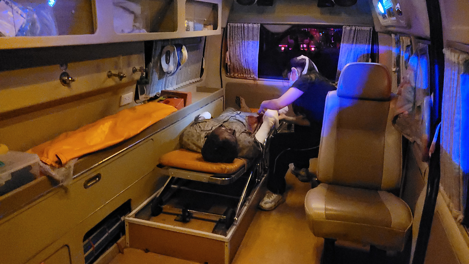 ***** ที่เกิดเหตุเป็นบ้านเดียว 2 ชั้นได้พบเพลิงกำลังลุกไหม้อยู่ที่บริเวณชั้นล่างโดยเปลวเพลิงได้ลุกโหมอย่างรุนแรงและกำลังลุกลามขึ้นไปบนชั้นสองซึ่งมีเด็กหญิงฝาแฝดอายุ 8 ขวบติดอยู่ด้านบน เจ้าหน้าที่ดับเพลิงได้ช่วยกันระดมฉีดน้ำสกัดเพลิงไม่ให้ลุกลามไปลุกไหม้ด้านบน ขณะที่เจ้าหน้าที่กู้ชีพได้เข้าให้การปฐมพยาบาลนายวีรพัฒน์ ทวีเจริญกิจ เจ้าของบ้านหลังดังกล่าวที่ถูกกระจกหน้าต่างบาดที่แขนทั้งสองข้างได้รับบาดเจ็บสาหัสเลือดไหลออกมาจำนวนมาก เจ้าหน้าที่ได้กู้ชีพได้ให้การปฐมพยาบาลเบื้องต้นก่อนนำส่งรักษาที่โรงพยาบาลเปาโลสมุทรปราการ ขณะที่เจ้าหน้าที่ชุดผจญเพลิงได้ปีนขึ้นไปที่ชั้นสองเข้าให้การช่วยเหลือเด็กหญิงฝาแฝดทั้งสองที่อยู่ในอาการสำลักควันออกมาได้อย่างปลอดภัย และรีบนำส่งรักษาที่โรงพยาบาลเปลาโลสมุทรปราการ เช่นกัน เจ้าหน้าที่ดับเพลิงได้ระดมฉีดน้ำสกัดเพลิงอยู่นานกว่าครึ่งชั่วโมงเพลิงจึงสงบ พบว่าเพลิงได้ลุกไหม้บริเวณชั้นล่างได้รับความเสียหายทั้งหมด ส่วนชั้นบนได้รับความเสียหายเล็กน้อย