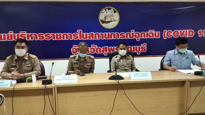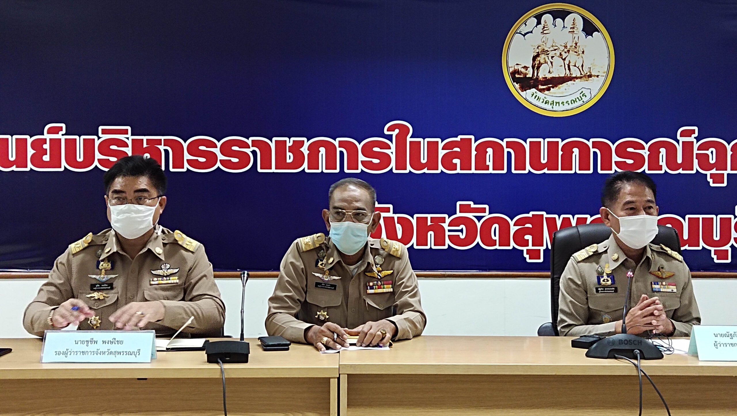 ที่จังหวัดสุพรรณบุรี นายณัฐภัทร สุวรรณประทีป ผู้ว่าราชการจังหวัดสุพรรณบุรี พร้อมด้วยนายชูชีพ พงษ์ไชย นายปรีชา ทองคำ รองผู้ว่าราชการจังหวัด นายแพทย์รัฐพล เวทสรณสุธี รองนายแพทย์สารธารณสุขจังหวัดสุพรรณบุรี ร่วมกันแถลงข่าวสถานการณ์การแพร่ระบาดของเชื้อไวรัสโควิด19 ในพื้นที่จังหวัดสุพรรณบุรี พร้อมชี้ตั้งคณะทำงานสื่อสารสร้างความใจให้ข้อมูลที่ถูกต้องให้กับพี่น้องประชาชนหรือหน่วยงานต่างๆในเรื่องโควิดที่มีประเด็นซักถามกันมาเยอะ