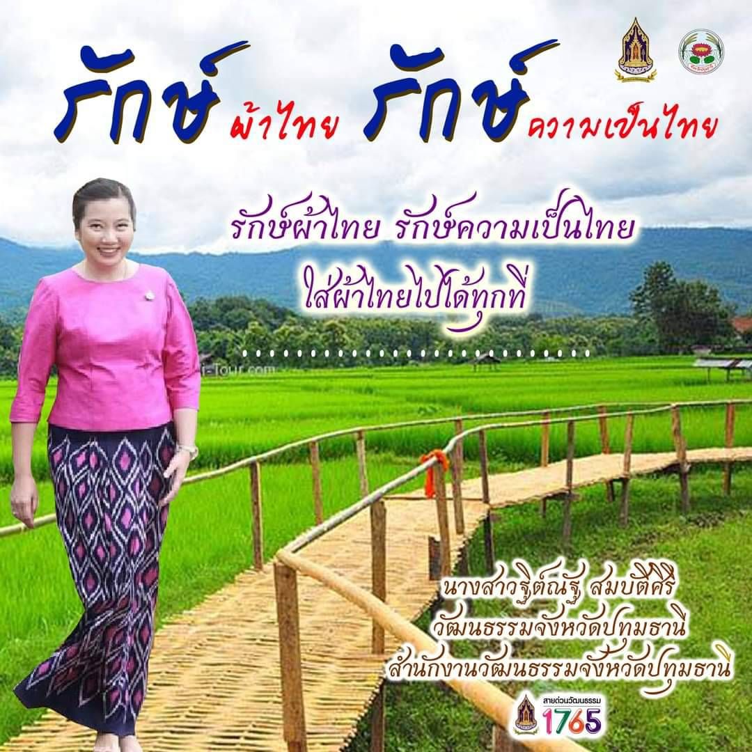 ด้านนางสาวฐิต์ณัฐ สมบัติศิริ วัฒนธรรมจังหวัดปทุมธานี กล่าวว่า จังหวัดปทุมธานีได้ดำเนินการตามนโยบายรัฐบาลส่งเสริมและสนับสนุนการใช้และสวมใส่ผ้าไทย โดยคณะรัฐมนตรีมีมติเห็นชอบให้ กรมการพัฒนาชุมชน กระทรวงมหาดไทย เป็นหน่วยงานเจ้าภาพหลัก ร่วมกับกระทรวงวัฒนธรรม ในการดำเนินการส่งเสริมและสนับสนุนการใช้และสวมใส่ผ้าไทย ร่วมกับกระทรวงและหน่วยงานต่างๆ ส่งเสริมการใช้และสวมใส่ผ้าไทย และขับเคลื่อนนโยบายกระทรวงวัฒนธรรม ในการส่งเสริมการต่อยอดทุนวัฒนธรรมด้วยคุณค่า เพิ่มมูลค่าทางเศรษฐกิจ สร้างรายได้ให้ประชาชน ชุมชนและประเทศ รวมทั้งส่งเสริมอัตลักษณ์ความเป็นไทยผ่านวัฒนธรรมการแต่งกายผ้าไทยและผ้าในท้องถิ่น เพื่อสร้างการรับรู้และปลูกฝังความภาคภูมิใจในความเป็นไทยและดำเนินการขับเคลื่อนมาตรการดังกล่าวให้เกิดเป็นรูปธรรมอย่างต่อเนื่อง