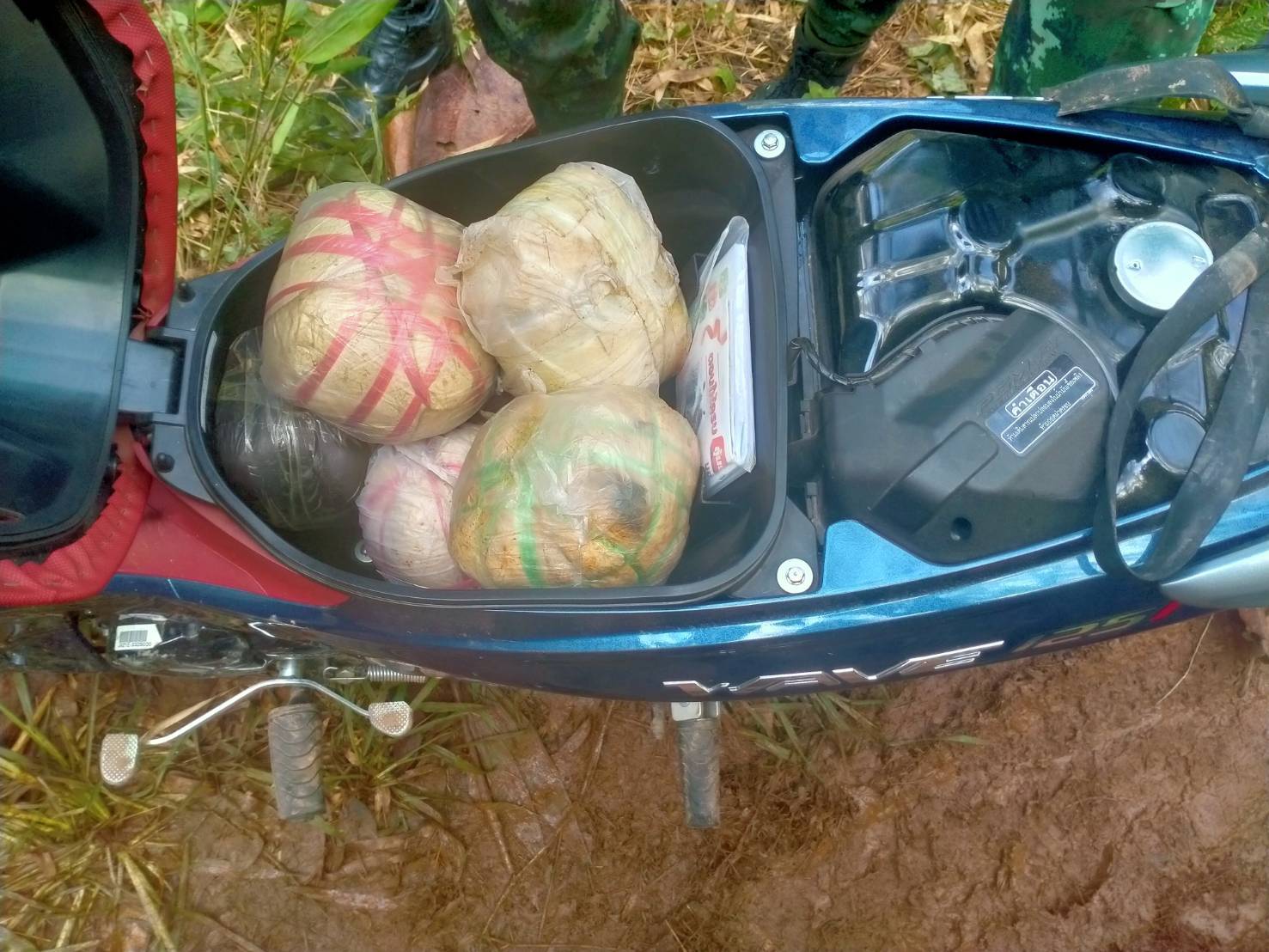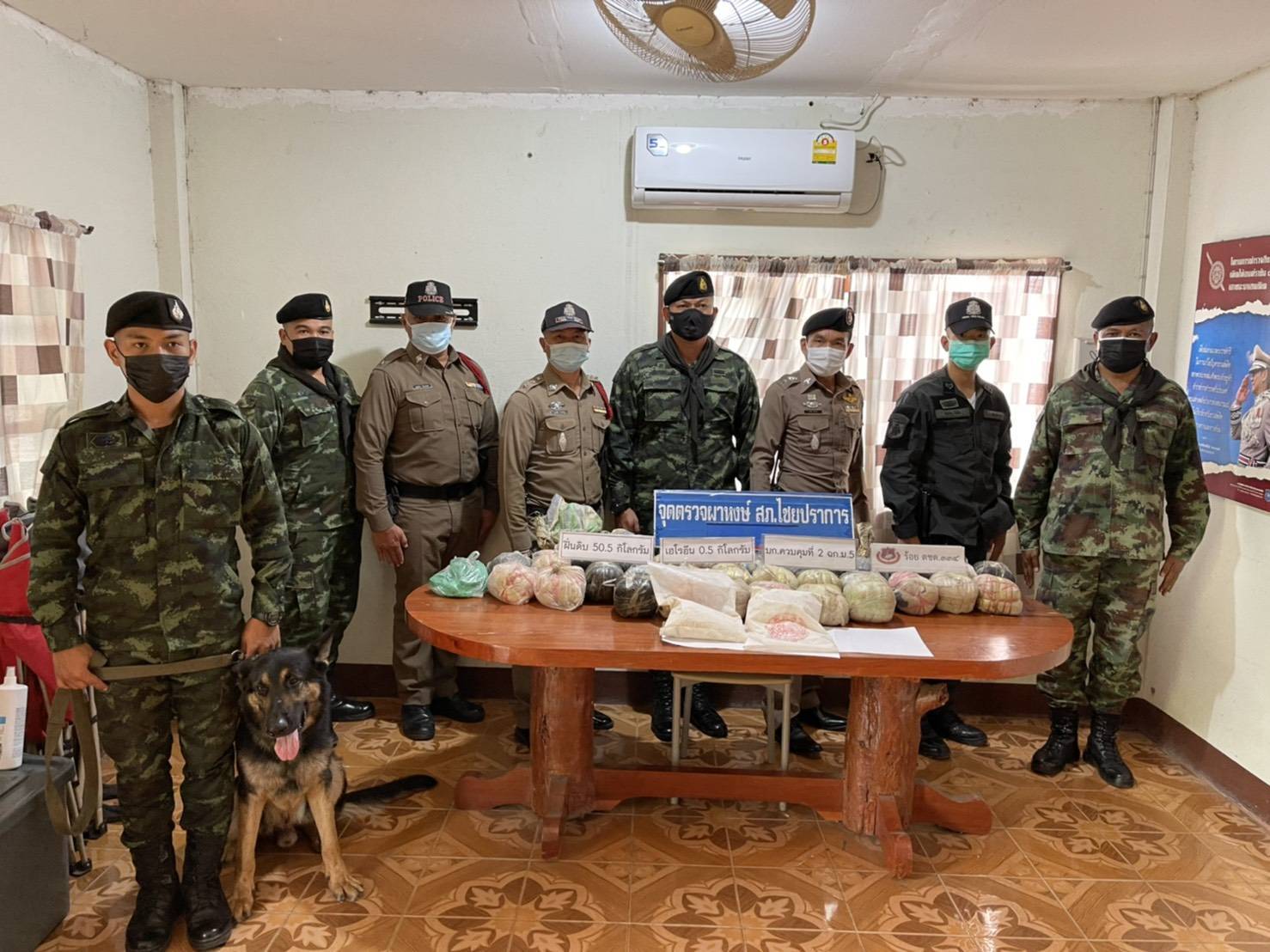 เจ้าหน้าที่ทหาร บก. ควบคุมที่ 2 ฉก. ม.5 ประกอบด้วย ร.อ.ธรรมรัตน์ ทิมกลางดอน รอง ผบ.บก.ควบคุมที่ 2 ฉก.ม.5 เจ้าพนักงาน ปปส. หมายเลขบัตร ปปส.583626,ร.ท.อุทัย โพธิ์กุดศรี น.ฝกบ.ผบ.บก.ควบคุมที่ 2 ฉก.ม.5 เจ้าพนักงาน ปปส. หมายเลขบัตร ปปส.621685 ,ร.ต.พยุงศักดิ์ พิทักษ์ น.ฝกร..ผบ.บก.ควบคุมที่ 2 ฉก.ม.5,ร.ต.วุฒิชัย วงคำซาว น.ฝขว.บก.ควบคุมที่ 2 ฉก.ม.5 , จ.ส.อ.เจดีย์ วีระวงค์. , จ.ส.อ.สุทธิพงษ์ แคล้วโยธา , จ.ส.อ.ประสิทธิ์ สุทธิมวล , จ.ส.อ.ดนุพล ลิตา,จ.ส.อ.สุนทร แพรวขุดทด ,จ.ส.ต.ณัฐภัทร ปัญโญ,.ส.อ.อานนท์ สายพันธ์, .ส.อ.รุ่ง ผลทับทิม , ส.ท.บอย ดวงใน เจ้าหน้าที่ทหารชุดสุนัขดมกลิ่นประกอบด้วย พลอาสา จิรภัทร เอี่ยมสอาด ได้ร่วมกันตรวจยึด 1. ยาเสพติดให้โทษประเภท 1 (เฮโรอีน) บรรจุในถุงพลาสติก ตราสิงโตเหยียบลูกโลก จำนวน 2 ถุง น้ำหนักรวมสิ่งห่อหุ้มประมาณ 500 กรัมยาเสพติดให้โทษประเภท 2 (ฝิ่นดิบ) บรรจุห่อหุ้มด้วยกระดาษสา พันทับด้วยเทปกาวสีดำบรรจุในถุงพลาสติกใสอีกหนึ่งชั้นหนึ่ง จำนวน 9 ก้อน แต่ละก้อนมีน้ำหนักประมาณ 1.7 กิโลกรัม และ ก้อนละประมาณ 1.6 กิโลกรัม อีกจำนวน 22 ก้อน รวมทั้งสิ้นมีฝิ่นดิบจำนวน 31 ก้อน น้ำหนักรวมประมาณ 50.5 กิโลกรัมรถ จยย. ยี่ห้อ HONDA รุ่น WAVE สีเขียว หมายเลขเครื่อง MLHJA210XL5525020 ที่ใช้ขนส่งลำเลียงยาเสพติด จำนวน 1 คันโดยกล่าวหาว่ามียาเสพติดให้โทษประเภท 1 (เฮโรอีน) ไว้ในความครอบครองเพื่อจำหน่ายโดยไม่ได้รับอนุญาต และมียาเสพติดให้โทษประเภท 2 (ฝิ่นดิบ) ไว้ในความครอบครองเพื่อจำหน่ายโดยไม่ได้รับอนุญาต