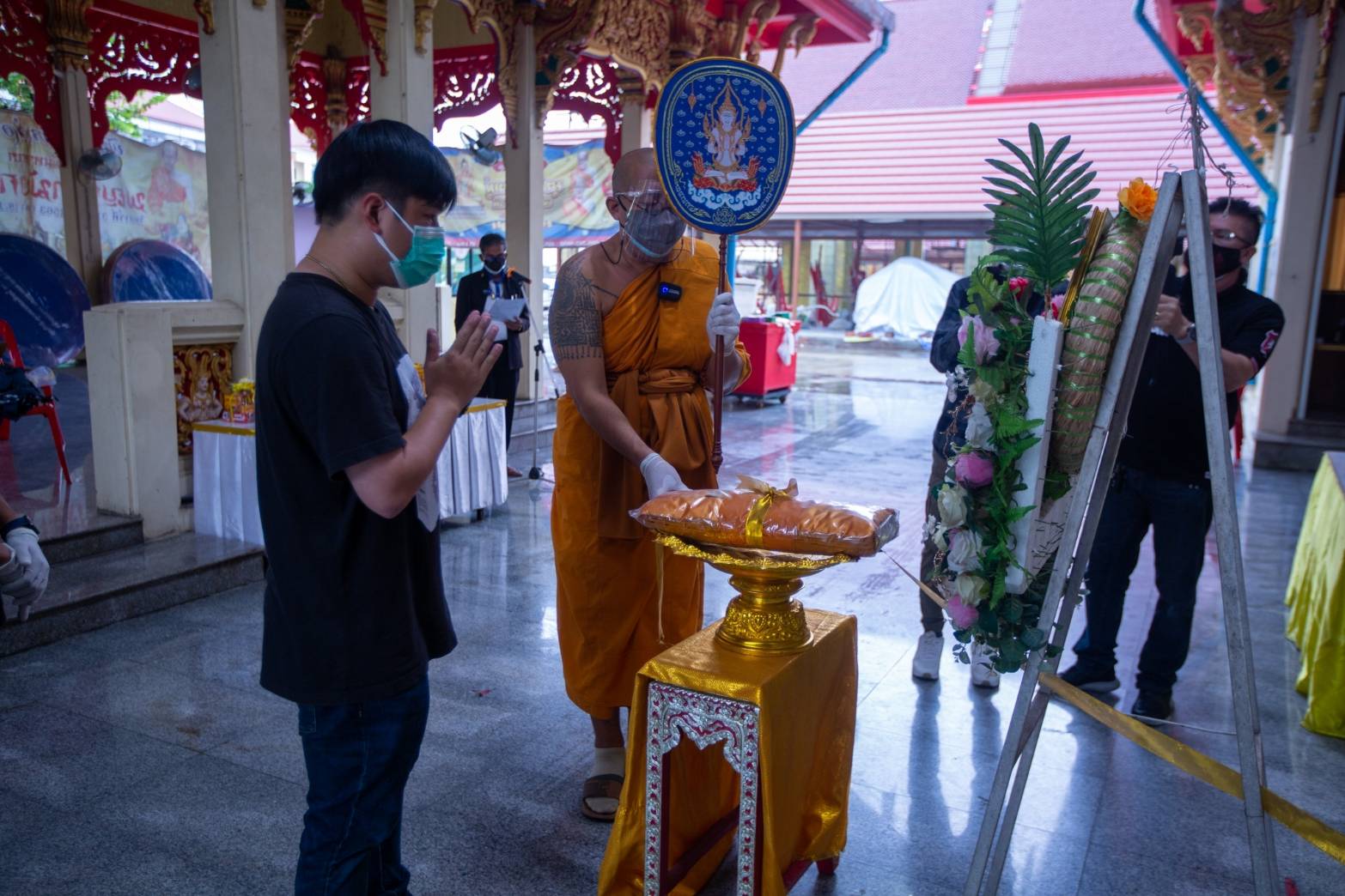 วันนี้ 29 เมษายน 64 ช่วงเช้าที่ผ่านมา ที่ศาลาชีวะศิริ วัดไผ่ล้อม ต.พระปฐมเจดีย์ อ.เมือง จ.นครปฐม บุตรชายทั้ง 2 ของ นางสาวลัดดา ตันติวิสุทธิธำรง อายุ 61 ปี ชาวกรุงเทพ ได้มารอทำพิธีฌาปนกิจศพ หลังจากผู้ตายเสียชีวิตด้วยการติดเชื้ดไวรัสโควิด-19 ที่โรงพยาบาลภูมิพล เมื่อวันที่ 28 เมษายน ที่ผ่านมา โดยพระครูปลัดสิทธิวัฒน์ หลวงพี่น้ำฝน เจ้าอาวาสวัดไผ่ล้อม ได้นำคณะสงฆ์จัดพิธีแบบตามกระบวนการเผาศพติดเชื้อไวรัสโควิด-19 เช่นศพรายอื่นๆ 10 ที่ผ่านมา