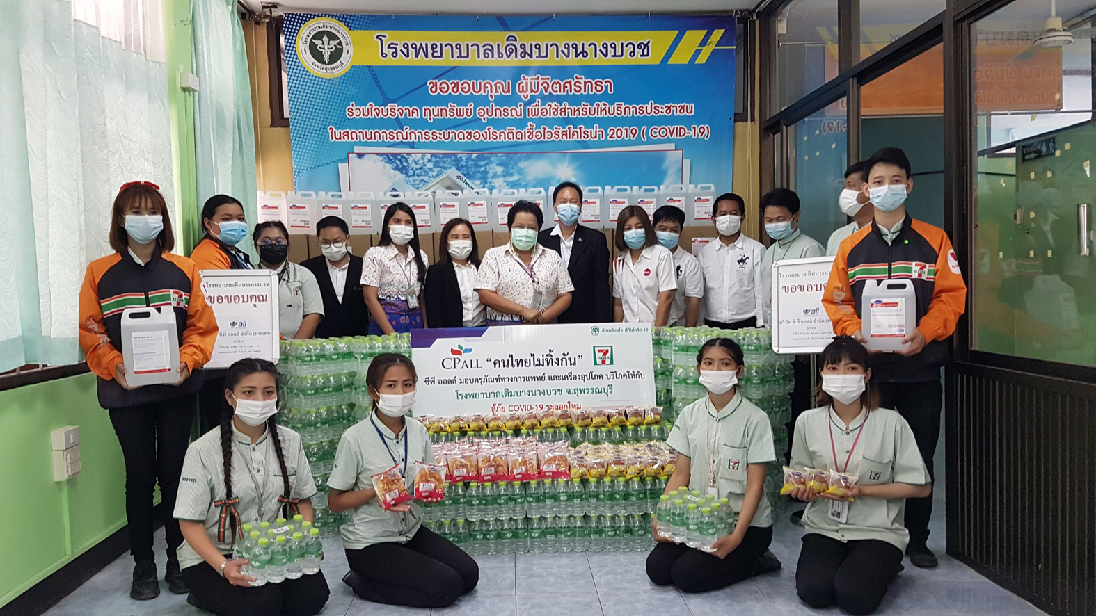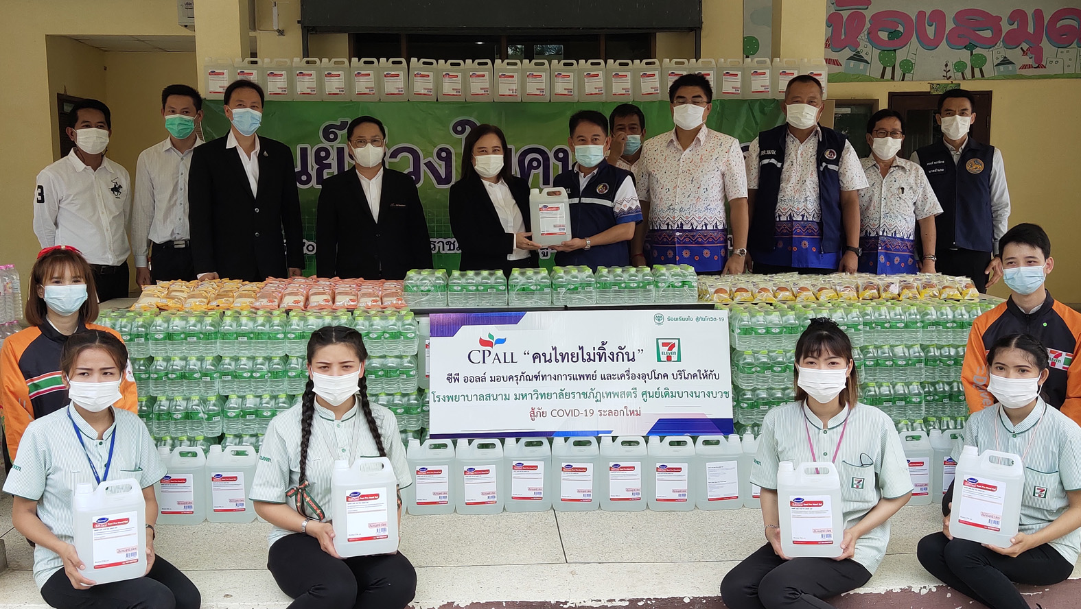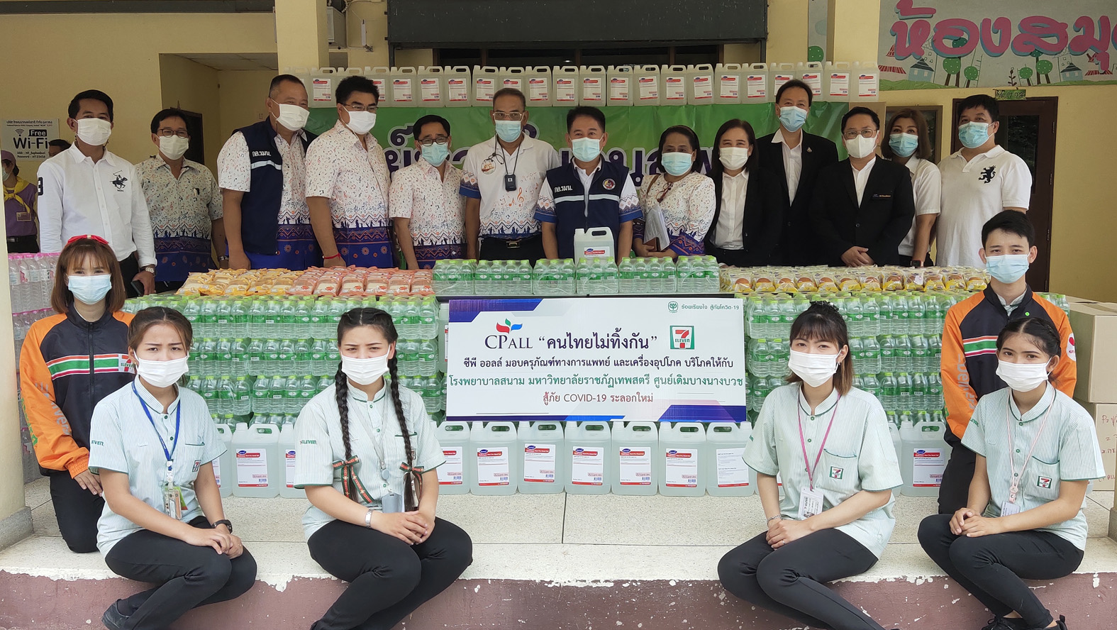 นายณัฐภัทร สุวรรณประทีป ผู้ว่าราชการจังหวัดสุพรรณบุรี เป็นประธานรับมอบแอลกอฮอลล์ทำความสะอาด จำนวน 800 แกนลอน น้ำดื่ม 4,800ขวดและเบเกอร์รี่ 1,000 ชิ้น จากนางนิชา สุพรรณพงษ์ ผู้จัดการทั่วไป บมจ.ซีพี ออลล์ พร้อมด้วยพนักงานเซเว่น อีเลฟเว่นในพื้นที่ ก่อนมอบให้กับ โรงพยาบาลสนาม มหาวิทยาลัยราชภัฏเทพสตรี ศูนย์เดิมบางนางบวช จังหวัดสุพรรณบุรี โดยมี นายปรีชา ทองคำ นายนพฤทธิ์ ศิริโกศล นายชูชีพ พงษ์ไชย รองผู้ว่าราชการจังหวัดสุพรรณบุรี และ ดร.พันธ์ศักดิ์ พึ่งงาม ผู้อานวยการศูนย์เดิมบางนางบวชมหาวิทยาลัยราชภัฏเทพสตรี ร่วมรับมอบ นอกจากนี้ยังได้ส่งมอบมอบแอลกอฮอลล์ทำความสะอาด น้ำดื่มและเบเกอร์รี่ ให้กับโรงพยาบาลเดิมบางนางบวช จ.สุพรรณบุรี โดยมี นางสาวเพ็ญพิชชา พวงปรึก หัวหน้ากลุ่มบริหารทั่วไป โรงพยาบาลเดิมบางนางบวช เป็นผู้แทนรับมอบ