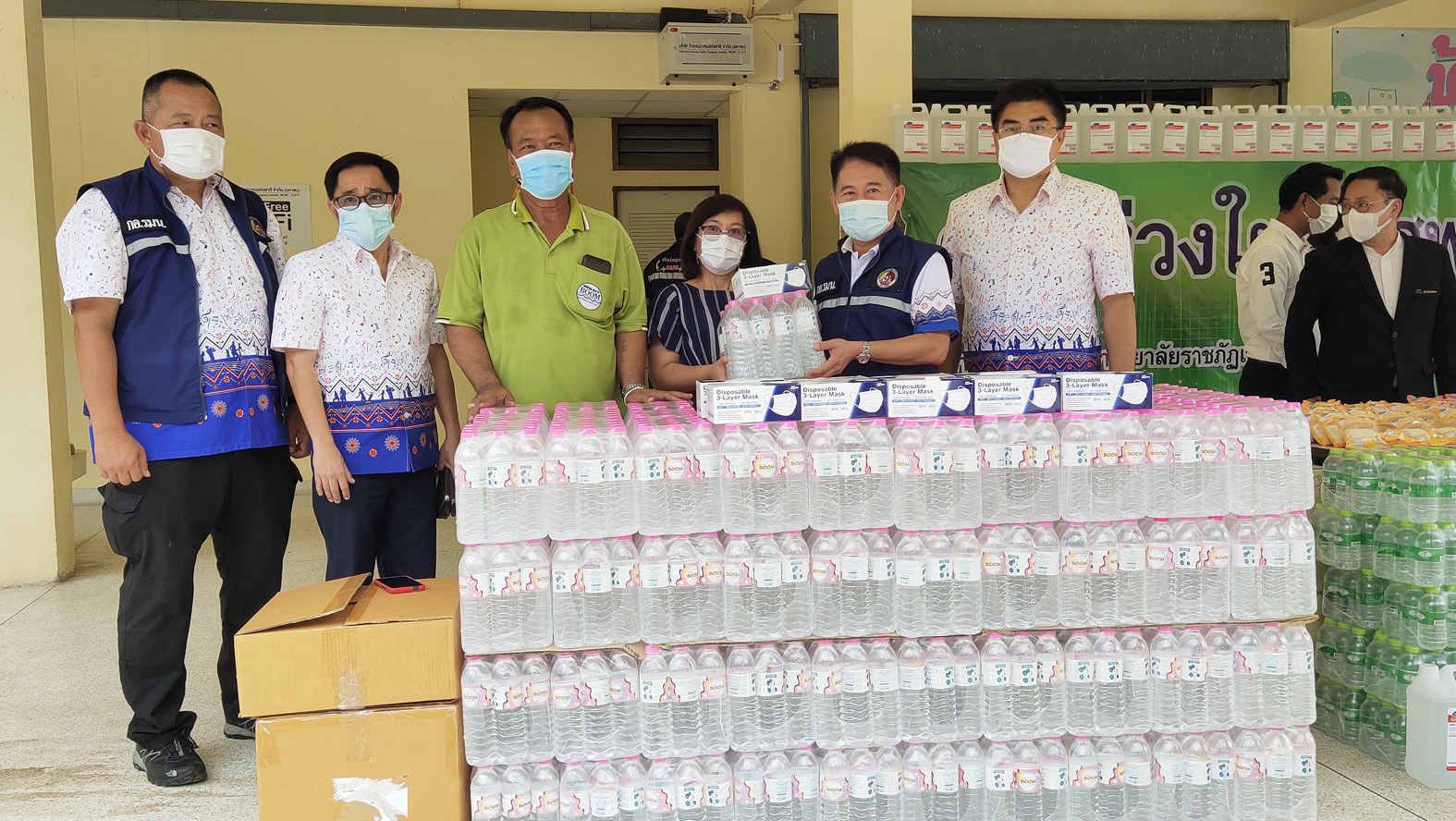วันนี้บริษัทซีพีออลล์ และบริษัทบูม อำเภอบางปลาม้า ได้นำสิ่งของครุภัณฑ์ทางการแพทย์ น้ำดื่มต่างมาบริจาคให้ซึ่งหลายคนพูดเหมือนกันว่าของที่นำมาบริจาคไม่อยากให้ใช้เพราะไม่อยากให้มีคนป่วยตนก็คิดเหมือนว่าไม่อยากใช้ทั้งสิ่งของและโรงพยาบาลแห่งนี้เพราะฉะนั้นจึงขอให้คนสุพรรณบุรีช่วยกันป้องกันตัวเองเพื่อไม่ให้เราเป็นส่วนหนึ่งในการแพร่เชื้อท่านต้องป้องกันตัวเองเนื่องจากขณะนี้ไว้ใจใครไม่ได้เนื่องจากไม่รู้ว่าใครติดหรือไม่ติดที่สำคัญท่านต้องสวมใส่หน้ากากอนามัยทุกครั้งก่อนจากบ้านไปในที่ชุมชนหรือที่สาธารณะถ้าไม่ใส่จะมีความผิดถูกจับและถูกปรับตามกฎหมาย