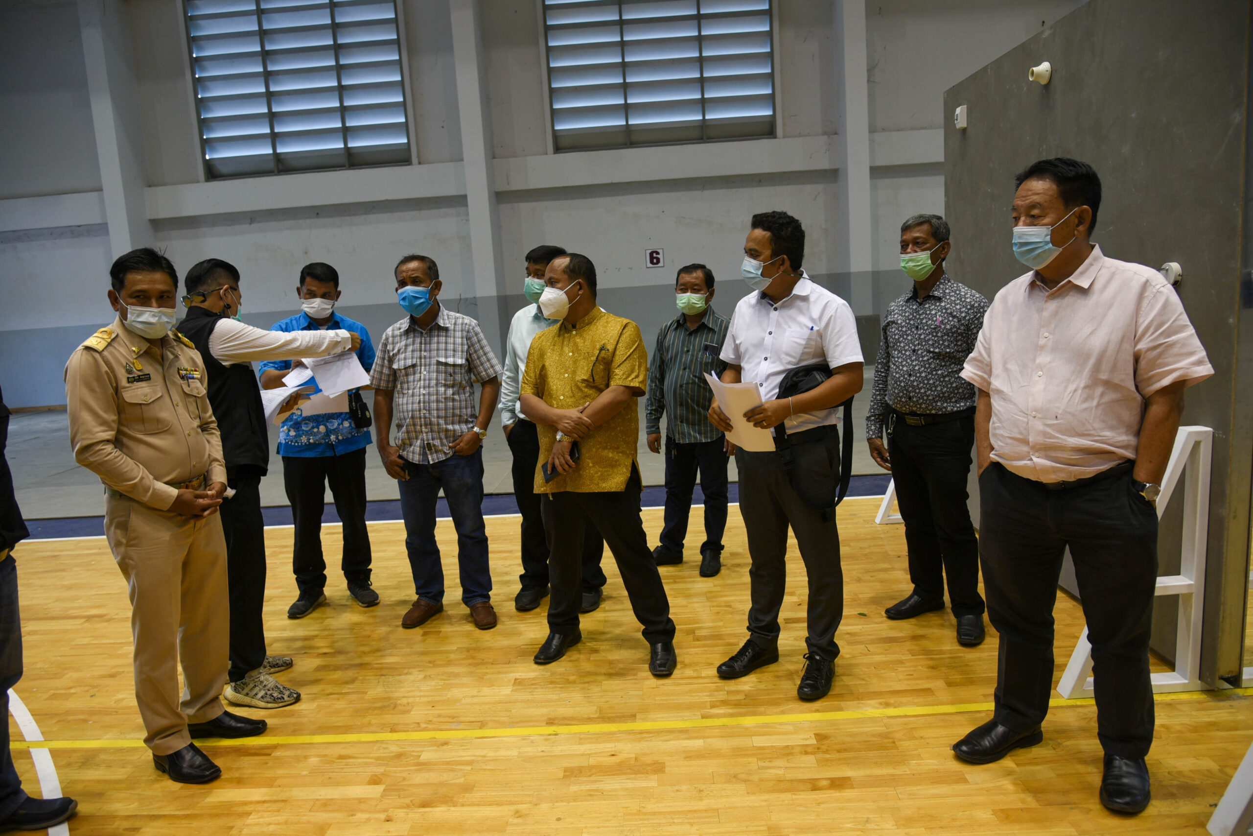หลังจากนั้น คณะขององค์การบริหารส่วนจังหวัดตรัง พร้อมด้วยนายอนันต์ อัครสุวรรณกุล นักวิชาการสาธารณสุขเชี่ยวชาญ รองนายแพทย์สาธารณสุขจังหวัดตรัง พร้อมด้วยเจ้าหน้าที่สำนักงานการท่องเที่ยวและกีฬาจังหวัดตรัง และบริษัทผู้รับจ้างเหมาปรับปรุงซ่อมแซมอาคารและติดตั้งอุปกรณ์บริเวณเตียงนอนสำหรับผู้ป่วย และจุดพักขยะติดเชื้อสำหรับผู้ป่วย เดินทางลงพื้นที่จัดตั้งโรงพยาบาลสนามแห่งที่ 1 ณ อาคารโรงยิม 1,000 ที่นั่ง สนามกีฬาทุ่งแจ้ง โดยนายอนันต์ อัครสุวรรณกุล นักวิชาการสาธารณสุขเชี่ยวชาญ รองนายแพทย์สาธารณสุขจังหวัดตรัง กล่าวว่า โรงพยาบาลสนามแห่งที่ 1 แห่งนี้ จะใช้เป็นสถานที่รองรับผู้ป่วยโรคติดต่อเชื้อไวรัสโคโรนา 2019 (COVID – 19) ของจังหวัดตรัง ที่มีอาการค่อนข้างรุนแรงและส่งต่อมาจากโรงพยาบาลสนามแห่งที่ 3 (โรงพยาบาลศูนย์ตรัง) เนื่องจากมีความเหมาะสมหลายด้าน เช่น ห่างไกลชุมชน อยู่ไม่ไกลจากโรงพยาบาลศูนย์ตรัง เส้นทางคมนาคมสะดวกคล่องตัว ลักษณะภายในและภายนอกอาคารมีพื้นที่เพียงพอต่อการปฏิบัติงานด้านการแพทย์และสาธารณสุข ซึ่งหลังได้รับการสนับสนุนงบประมาณจากองค์การบริหารส่วนจังหวัดตรัง ได้ดำเนินการจัดซื้อจัดจ้างวัสดุครุภัณฑ์ที่จำเป็นต้องใช้ภายในโรงพยาบาลสนามไว้พร้อมแล้ว คงเหลือบางรายการที่รอดำเนินการหลังจากมีการปรับปรุงซ่อมแซมอาคารและติดตั้งอุปกรณ์บริเวณเตียงนอนสำหรับผู้ป่วย และจุดพักขยะติดเชื้อสำหรับผู้ป่วยแล้วเสร็จ ซึ่งได้ลงนามสัญญาจ้างเหมาเพื่อดำเนินการดังกล่าว งบประมาณ 1,650,000 บาท