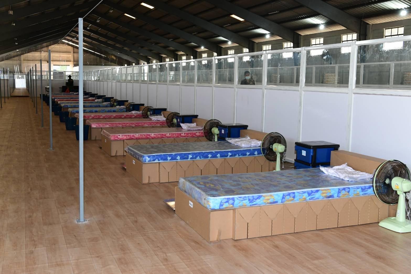 จากโรงพยาบาล กรณีอาการไม่รุนแรง(กลุ่มสีเขียว)ให้มาพักรักษาและติดตามอาการต่อเนื่อง จนกว่าผลตรวจจะเป็นลบหรือไม่พบเชื้อแล้ว แต่หากพบว่ามีอาการหนักขึ้น ก็จะถูกส่งตัวกลับไปรักษาที่โรงพยาบาลหลักทันที นอกจากนี้ บริษัท ทรู คอร์ปอเรชั่น ได้สนับสนุนนำเทคโนโลยี 5G และนวัตกรรมต่างๆ เข้าไปสนับสนุนการทำงาน การเว้นระยะห่างของการทำงานของแพทย์ พยาบาล และเจ้าหน้าที่ฯ ( Social distancing ) เพื่อช่วยให้การสื่อสารมีประสิทธิภาพมากขึ้น ยกระดับให้การทำงานของทีมแพทย์ และบุคลากรต่างๆ ไร้อุปสรรคในการปฏิบัติหน้าที่ในการดูแลผู้ป่วยในโรงพยาบาลสนามแห่งนี้ด้วย