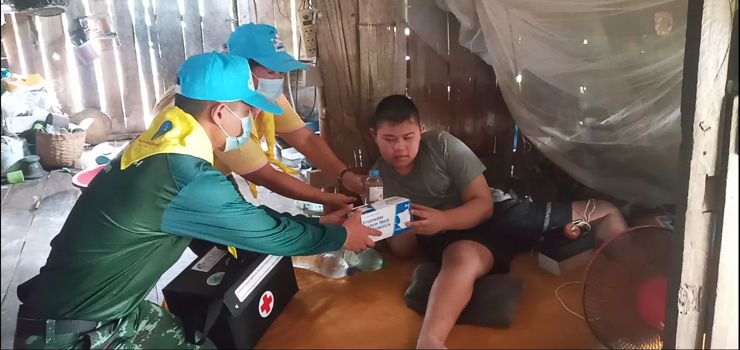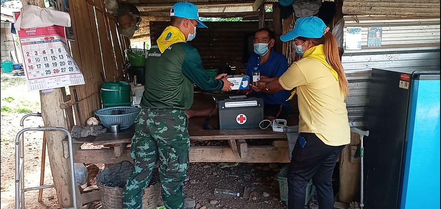 จึงได้มอบหมายให้ พ.อ.วินิจ สว่างเนตร ผู้บังคับการกรมทหารราบที่ 29 เป็นผู้รับผิดชอบดำเนินการนำหน้ากากอนามัย พร้อมกำลังพล แจกจ่ายให้กับประชนในพื้นที่ ตำบลไทรโยค อำเภอไทรโยค จังหวัดกาญจนบุรี โดยมี พ.ท.นพโรจน์ ชัยอัมราพัฒน์ ผู้บังคับกองพันทหารราบที่1 กรมทหารราบที่ 29 นำกำลังพลพร้อมด้วยเจ้าหน้าที่จิตอาสา กองพันทหารราบที่ 1 กรมทหารราบที่ 29 และเจ้าหน้าที่ อสม. ตำบลไทรโยค ร่วมกันขับขี่รถจักยานยนต์พ่วงข้าง เดินทางลงสู่บ้านผู้ป่วยติดเตียงและคนชรา เพื่อทำการวัดไข้ และมอบหน้ากากอนามัย พร้อม แอลกอฮอล์ล้างมือ ฆ่าเชื้อให้แก่ญาติหรือคนดูแลผู้ป่วยติดเตียง และญาติของคนชรา เพื่อนำไปใช้เมื่อมีความจำเป็นต้องเดินทางออกจากบ้าน และเพื่อป้องกันมิให้นำเชื้อโรคโควิต 19 จากภายนอกนอกมาสู่ผู้ป่วยติดเตียงและคนชรา