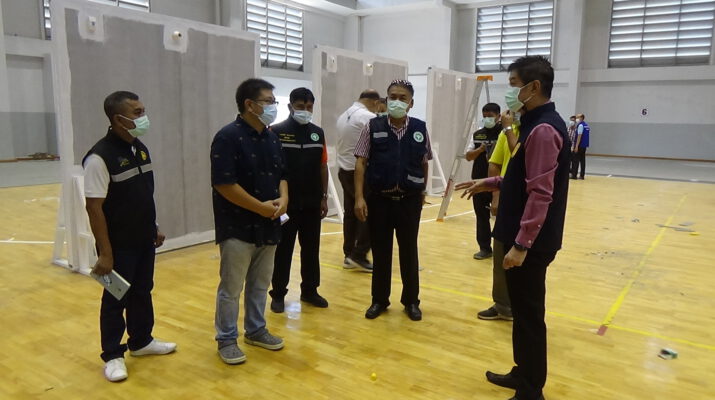 นายขจรศักดิ์ เจริญโสภา ผู้ว่าราชการจังหวัดตรัง ลงพื้นที่ตรวจติดตามความคืบหน้าการปรับปรุงโรงพยาบาลสนามแห่งที่ 1 ณ โรงยิม 1000 ที่นั่ง สนามกีฬาเทศบาลนครตรัง 2 (ทุ่งแจ้ง) อำเภอเมืองตรัง ทั้งนี้จังหวัดตรัง กำหนดจัดตั้งโรงพยาบาลสนามแห่งที่ 1 ณ อาคารโรงยิม 1000 ที่นั่ง สนามกีฬาเทศบาลนครตรัง 2 (ทุ่งแจ้ง) ตำบลทับเที่ยง อำเภอเมืองตรัง จังหวัดตรัง เพื่อใช้เป็นสถานที่สำหรับรองรับผู้ป่วยโรคติดเชื้อไวรัสโคโรน่า 2019 ของจังหวัดตรัง จำนวน 90 เตียง ซึ่งต้องใช้งบประมาณกว่า 6 ล้านบาท เพื่อดำเนินการด้านอาคารสถานที่และครุภัณฑ์ที่จำเป็นต้องใช้ภายในโรงพยาบาลสนาม ซึ่งจังหวัดตรัง ได้ดำเนินการจัดซื้อจัดจ้างวัสดุครุภัณฑ์ที่จำเป็นต้องใช้ภายในโรงพยาบาลสนามไว้พร้อมแล้ว จากการตรวจสอบนั้นการดำเนินงานใกล้ที่จะเปิดใช้งานได้แล้ว ในระยะแรกนั้นจะจัดวางเตียง จำนวน 30 เตียงจาก 90 เตียง ก่อน และได้กำชับให้ผู้รับเหมาเร่งดำเนินงานให้แล้วเสร็จตามกำหนด