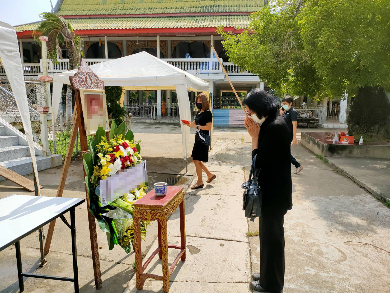 โดยขณะที่ทำพิธีนั้น ทางสาธารณสุขอำเภอท่าช้าง ได้เป็นเจ้าภาพแทนครอบครัวของผู้เสียชีวิตเนื่องจากคนในครอบครัวบางคนติดเชื้อโควิด-19 กำลังรักษาตัวอยู่ และบางคนก็อยู่ในกลุ่มผู้เสี่ยงสูงซึ่งอยู่ในระหว่างกักตัว ทางเจ้าหน้าที่ฯ จึงได้วิดิโอคอลประชุมสายเพื่อให้ทุกคนในครอบครัวของผู้เสียชีวิตได้เห็นพิธีในการฌาปนกิจทุกขั้นตอน ซึ่งคนในครอบครัวต่างร้องไห้ระงม หลังจากเผาเสร็จแล้วจะให้ญาตินำเถ้ากระดูกไปบำเพ็ญกุศลตามประเพณีต่อไป ส่วนสถานการณ์แพร่ระบาดของไวรัสโควิค-19 ในพื้นที่จังหวัดสิงห์บุรีขณะนี้ มีผู้เสียชีวิต 1 ราย รวมยอดสะสมที่ 62 ราย รักษาหายกลับบ้านได้ 22 ราย และกำลังรักษา 38 ราย