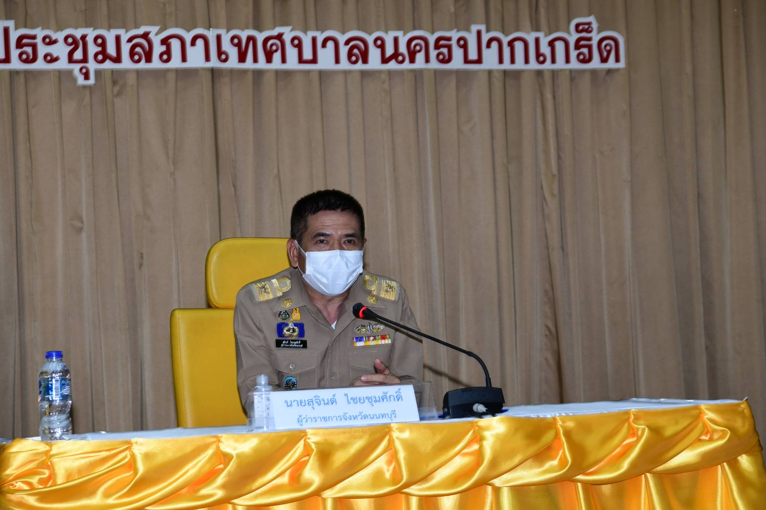 วันนี้( 6 พ.ค. 2564 ) เวลา 14.00 น. ที่ห้องประชุมเทศบาลนครปากเกร็ด อ.ปากเกร็ด จ.นนทบุรี นายสุจินต์ ไชยชุมศักดิ์ ผู้ว่าราชการจังหวัดนนทบุรี เป็นประธานเปิดประชุมสภาเทศบาลครั้งแรกของเทศบาลนครปากเกร็ด นายวิชัย บรรดาศักดิ์ นายกเทศมนตรีเทศบาลนครปากเกร็ดพร้อมผู้บริหารและสมาชิกสภาเทศบาลนครปากเกร็ดได้เข้าร่วมประชุม ครั้งแรก หลังจากมีการเลือกตั้งสมาชิกสภาเทศบาลและนายกเทศมนตรี เมื่อวันที่ 28 มันาคม 2564 ที่ผ่านมา โดยผู้ว่าราชการจังหวัดนนทบุรี ขอให้นายกเทศมนตรีและสมาชิกสภาเทศบาลนครปากเกร็ด ทำตามความต้องการประชาชน แก้ปัญหาความเดือดร้อนของประชาชน ทำงานตามนโยบายที่หาเสียงไว้ ตามแผนพัฒนาเทศบาลและทำตามนโยบายรัฐบาล ด้วยความซื่อสัตย์ สุจริต เสียสละ เพื่อประโยชน์ชาวนนทบุรี จากนั้นที่ประชุมมีวาระเลือกประธานและรองสภาเทศบาลนครปากเกร็ด พร้อมกันนี้ ผู้ว่าราชการจังหวัดนนทบุรีได้มอบช่อดอกไม้แสดงความยินดีกับนายกเทศมนตรีนครปากเกร็ดด้วย