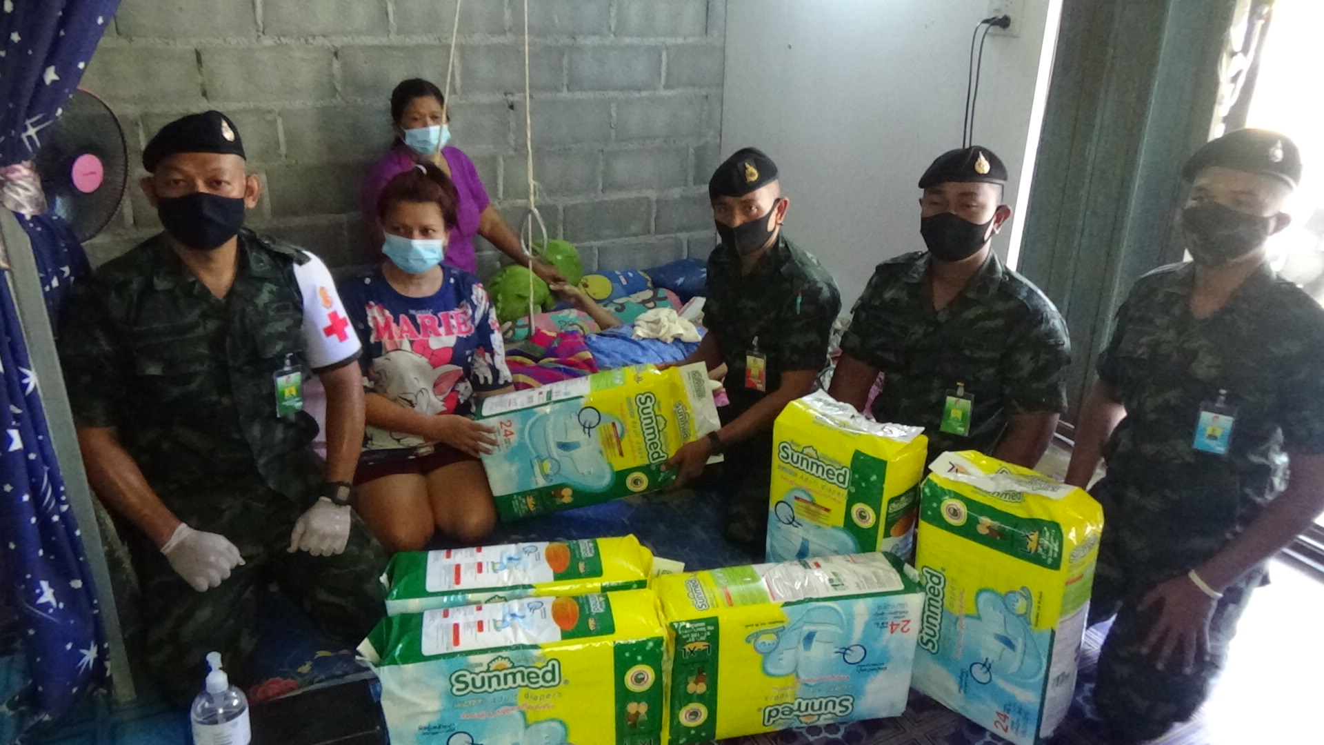 ทั้งนี้ทางเจ้าหน้าที่ทหาร Army Delivery ได้ขี่รถจักรยานยนต์นำผ้าอ้อมสำหรับผู้ใหญ่มามอบให้กับนางประดับ ทองรักษ์ อายุ 72 ปี มีอาการเส้นเลือดในสมองแตก เมื่อ 7 พ.ย.63 นอนรักษาตัวที่โรงพยาบาลตรัง 1 เดือน และตอนนี้กลับบ้านมาได้ 6 เดือนเต็ม ซึ่งยังช่วยเหลือตัวเองไม่ได้ แต่รู้สึกตัว พูดคุยไม่ได้ แต่สื่อสารโดยการสังเกตกริยาพยักหน้า ส่ายหน้า อยู่บ้านเลขที่ 128 ม.8 ต.นาท่าเหนือ อ.เมือง จ.ตรัง อีกทั้งแพทย์ทหารได้มีการตรวจวัดไข้ วัดชีพจร และอัตราการเต้นของหัวใจ ให้กับผู้ป่วยอีกด้วย ซึ่งน.ส.จรรยา ทองรักษ์ บุตรสาวของผู้ป่วยได้ขอบคุณหน่วยทหารที่ให้ความช่วยเหลือในครั้งนี้ ทั้งนี้กองพันทหารราบที่ 4 กรมทหารราบที่ 15 ได้จัดงบประมาณส่วนหนึ่ง ซื้อผ้าอ้อมสำหรับผู้ใหญ่ นำไปมอบให้กับผู้ป่วย ซึ่ง Army Delivery เป็นไปตามนโยบายของกองทัพบกและกองทัพภาคที่ 4 ในการให้ความช่วยเหลือประชาชนที่ได้รับผลกระทบจากโควิด -19 โดยเฉพาะผู้ป่วยติดเตียง,พิการและคนชรา ที่เดินทางมารับสิ่งของช่วยเหลือได้ลำบาก จึงต้องนำสิ่งของไปส่งให้ถึงบ้าน