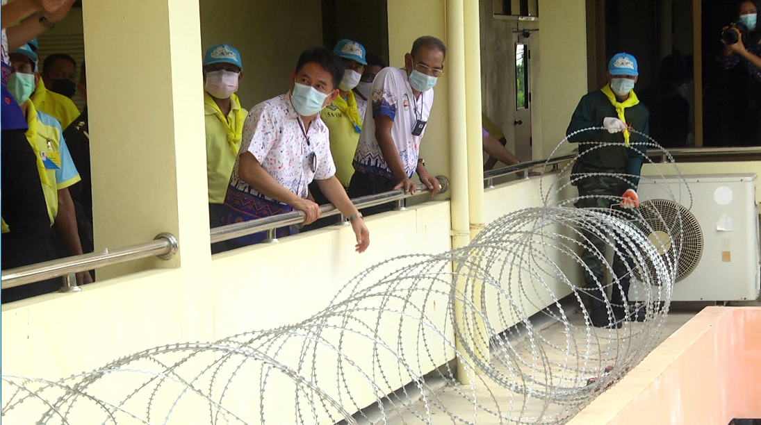 ในการนี้ เจ้าคณะอำเภอสวนผึ้งได้เดินทางมาเยี่ยมดู รพ.สนาม พร้อมให้กำลังใจผู้ว่าราชการจังหวัดสุพรรณบุรี และเจ้าหน้าที่ผู้ปฏิบัติงานพร้อมกล่าวว่าหากทางจังหวัดสุพรรณบุรีขาดเหลืออะไรขอให้บอกพร้อมให้การสนับสนุน พร้อมกันนี้ได้รับมอบ น้ำดื่ม จำนวน160 ขวด หน้ากากผ้า จำนวน 200 ชิ้น ซิมโทรศัพท์มือถือสำหรับบุคลากร 10 ชิ้น และผู้ป่วย 100 ชิ้น ตลอดจนเครื่องสำรองไฟ UPS เครื่องกระจายสัญญาณ WIFI และโค้ดทรูวิชั่น จากบริษัททรูคอร์เปอร์เรชั่น จำกัด สาขาสุพรรณบุรี จากนั้น พ.อ.เชาว์ ธีระชาติ หัวหน้ากองการข่าว มทบ.17หัวหน้าชุดปฏิบัติการจังหวัดสุพรรณบุรี ได้รับมอบหมายจาก พล.ต.ชิษณุพงษ์ รอดศิริ ผู้บัญชาการมณฑลทหารบกที่ 17 นำลวดหนามหีบเพลง มาติดตั้งบริเวณระเบียงอาคารเพื่อป้องกันผู้ป่วยกระโดด