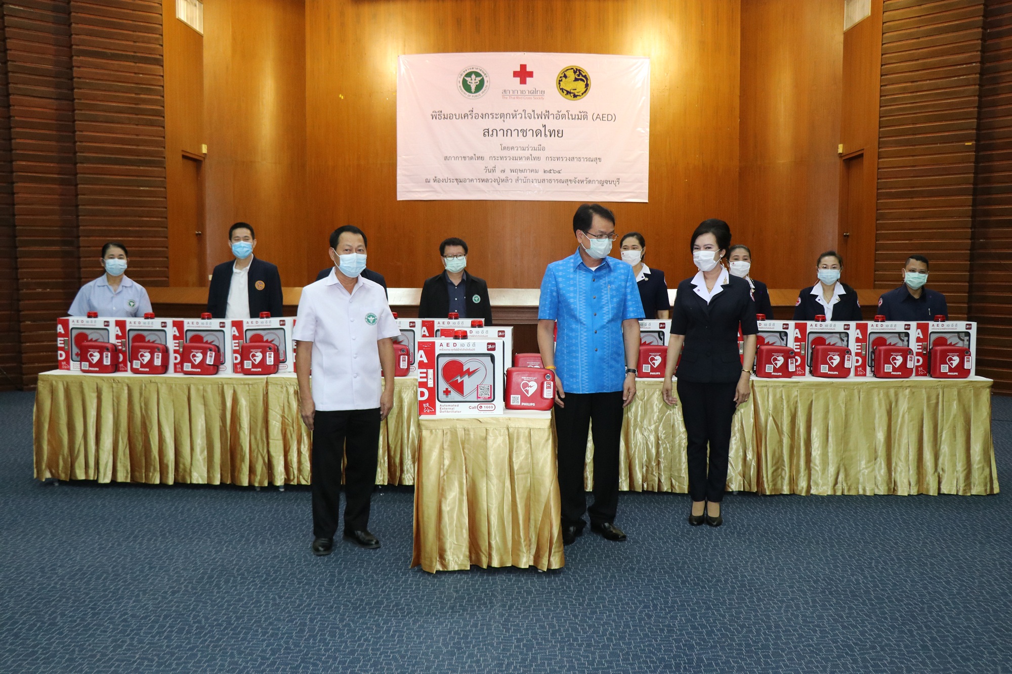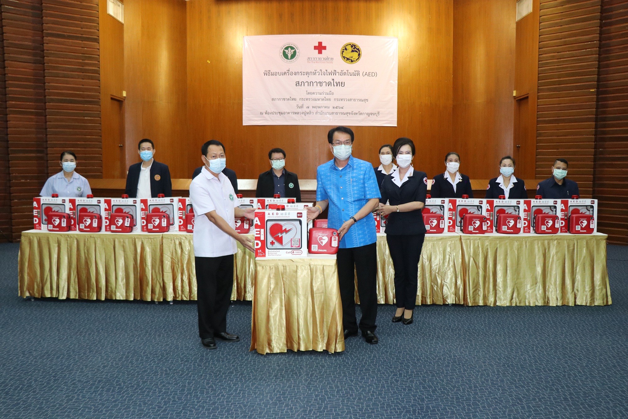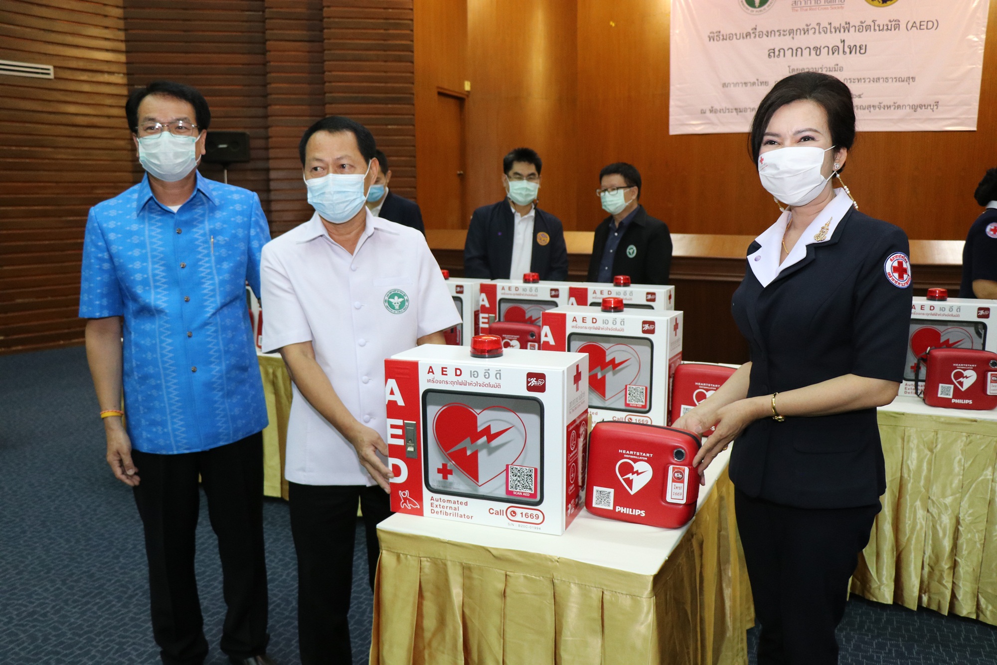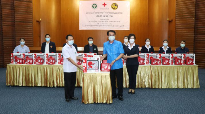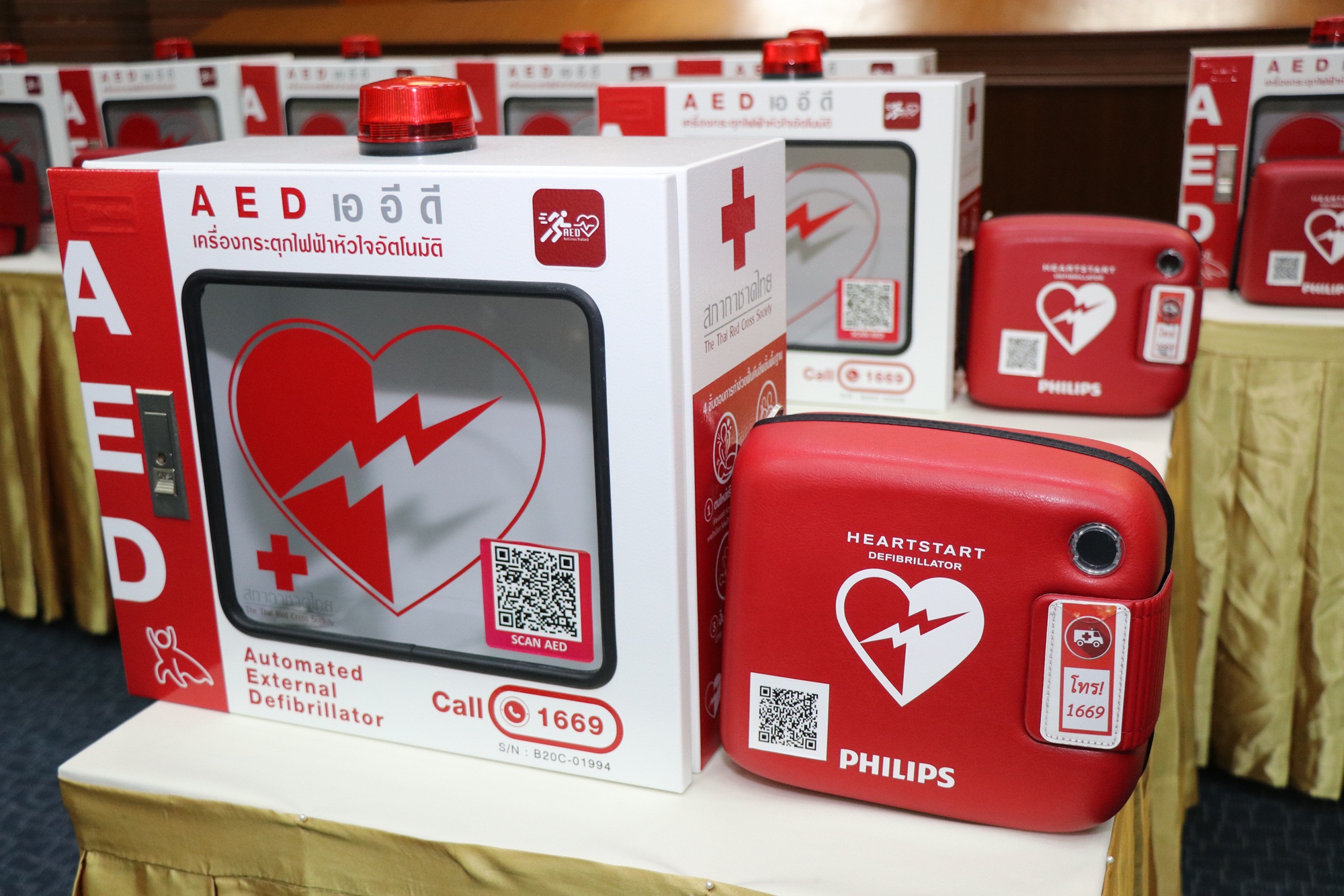 กาญจนบุรี รับมอบเครื่องกระตุกหัวใจไฟฟ้าอัตโนมัติ (AED) จากสภากาชาดไทย 16 เครื่องนำไปติดตั้งตามแหล่งท่องเที่ยว สถานที่ต่างๆที่เหมาะสม เพื่อไว้ใช้ยามฉุกเฉิน เป็นอุปกรณ์ช่วยชีวิต กู้ชีวิตประชาชนที่เกิดภาวะหัวใจหยุดเต้นเฉียบพลัน