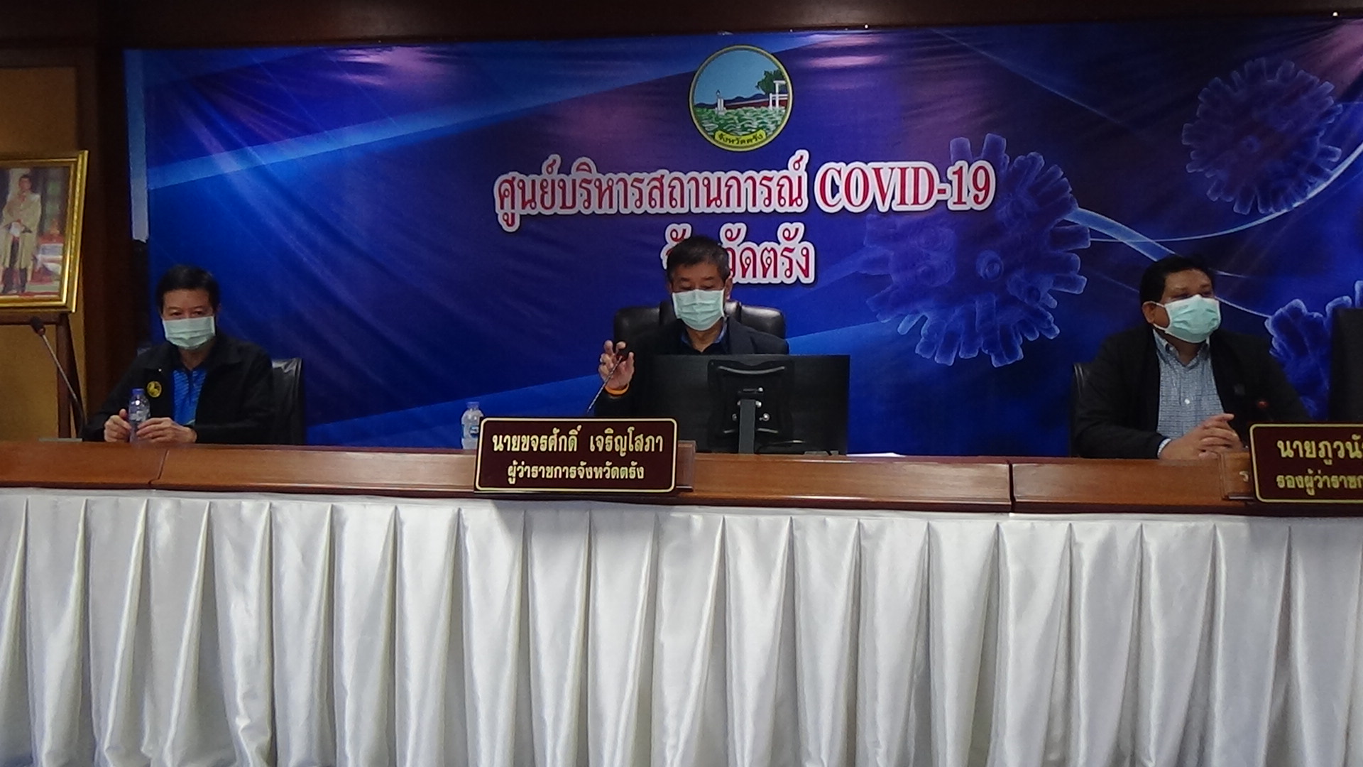ผู้ว่าราชการจังหวัดตรัง ประชุมคณะกรรมการโรคติดต่อจังหวัดตรัง พร้อมทั้งสั่งการทุกอำเภอให้เพิ่มความเข้มงวดตรวจผู้ที่เดินทางมาจากพื้นที่สีแดงเข้มและพื้นที่สีแดง ต้องกักตัวทันที 14 วัน นอกจากนี้ยังสั่งการให้เข้มงวดการจัดงานต่างๆ หากเกิดการแพร่ระบาดภายในงานเจ้าภาพต้องรับผิดชอบ