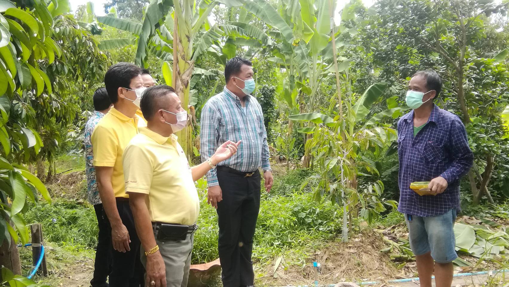 ที่สวนทุเรียนนายเฉลิม พึ่งสาระ หรือผู้ใหญ่ตู่ ผู้ใหญ่บ้านหมู่ 6 ต.บางเลน อ.บางใหญ่ จ.นนทบุรี ว่าที่ร้อยตรีวงศ์สยาม เพ็งพานิชภักดี สมาชิกวุฒิสภา พร้อมด้วยดร.สิทธิศักดิ์ เจียวพงษ์พิพัฒน์ ผู้ชำนาญการประจำตัวสมาชิกวุฒิสภาและ ดร.อภินันท์ เหลืองพิพัฒน์สร ผู้ช่วยดำเนินงานของสมาชิกวุฒิสภา นายจิณณะ นิ่มนวล ผู้ช่วยดำเนินงานของสมาชิกวุฒิสภา และดร.เอกชัยแตงอ่อน ผู้ช่วยดำเนินงานของสมาชิกวุฒิสภา พร้อมทีมงานเดินทางเข้าเยี่ยมเยียน และให้กำลังใจ นายเฉลิม พึ่งสาระ ผู้ใหญ่ตู่ เจ้าของสวนทุเรียน โดยมี นางราตรี ใจสะอาด เกษตรอำเภอบางใหญ่ ให้การต้อนรับ