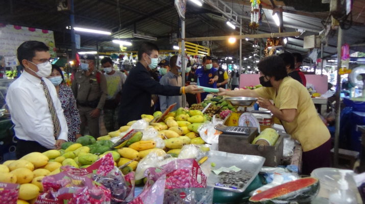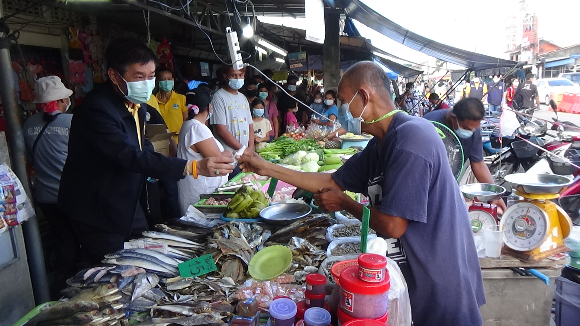 ที่ตลาดสดบ้านโพธิ์ อ.เมืองตรัง นายขจรศักดิ์ เจริญโสภา ผู้ว่าราชการจังหวัดตรัง พร้อมด้วย นายวิศิษฐ์ อนันต์วรปัญญา ปลัดจังหวัดตรัง นายตุลกานต์ มักคุ้น นายแพทย์ชำนาญการพิเศษโรงพยาบาลตรัง ในฐานะโฆษกศูนย์บริหารสถานการณ์การแพร่ระบาดของโรคติดเชื้อไวรัสโคโรนา 2019 จังหวัดตรัง นายวัลลภ ช่วยบำรุง ปลัดเทศบาล ปฏิบัติหน้าที่นายกเทศมนตรีนครตรัง และคณะลงพื้นที่ตรวจเยี่ยมตลาดสด พร้อมแจกแอลกอฮอล์และหน้ากากอนามัย เพื่อติดตามมาตรการป้องกันการแพร่ระบาดของเชื้อไวรัสโคโคโรนา 2019 ตามแนวทางปฏิบัติที่กระทรวงสาธารณสุขกำหนด