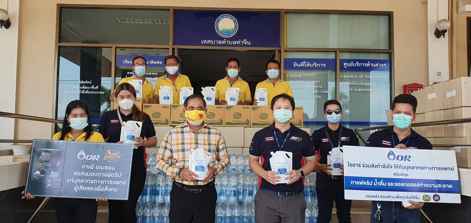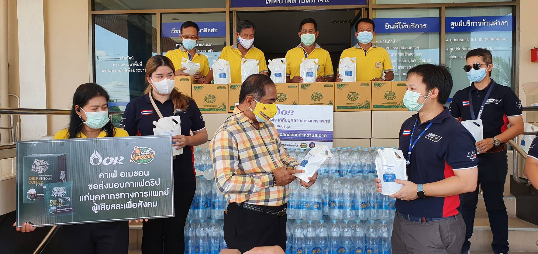 สำหรับสิ่งของที่ทาง ปตท.ได้นำมาสนับสนุน ได้แก่ แอลกอฮอล์ จำนวน 300 ลิตร กาแฟดริป คาเฟ่อเมซอน จำนวน 1,000 ซอง น้ำดื่ม 360 ขวด (60แพ็ค)