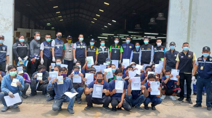 วันนี้ ( 12 พ.ค.64 ) เวลาประมาณ 10.30 น. ตม.จว.สมุทรสาคร นำโดย พ.ต.อ.ภาสกร รัตนปนัดดา ผกก.ตม.จว.สมุทรสาคร บูรณาการร่วมกับ จัดหางานจังหวัดสมุทรสาคร ฝ่ายปกครอง อำเภอเมืองสมุทรสาคร สวัสดิการและคุ้มครองแรงงานจังหวัดสมุทรสาคร ประกันสังคมจังหวัด กอ.รมน. สภ.กระทุ่มแบน และ ตำรวจสันติบาลจังหวัดสมุทรสาคร ปิดล้อมตรวจค้น บริษัท เคนจิ อัลลอย จำกัด และ บริษัท ฟ่านด๋า ฟิตติ๊งส์ จำกัด ตั้งอยู่เลขที่ 88/2 ม.5 ต.คลองมะเดื่อ อ.กระทุ่มแบน จว.สมุทรสาคร ตรวจพบแรงงานทั้งสิ้น 91 ราย เป็น แรงงานสัญชาติไทย 41 ราย และสัญชาติเมียนมาร์ 43 ราย ลาว 7 ราย