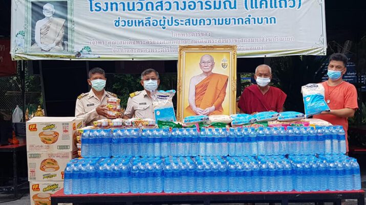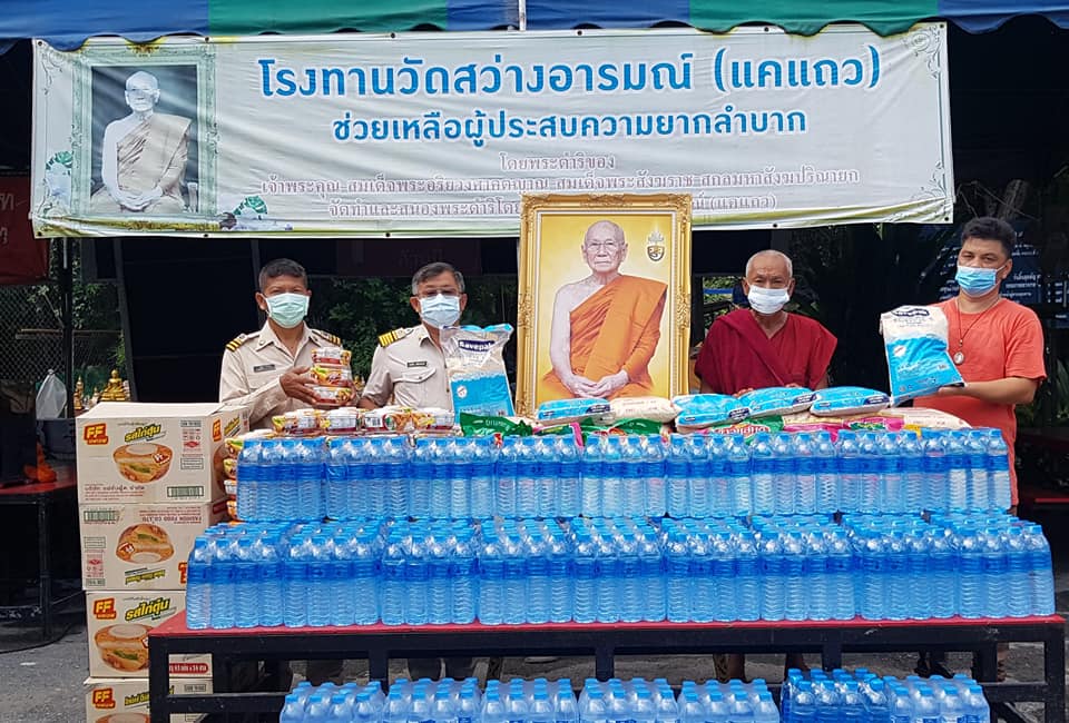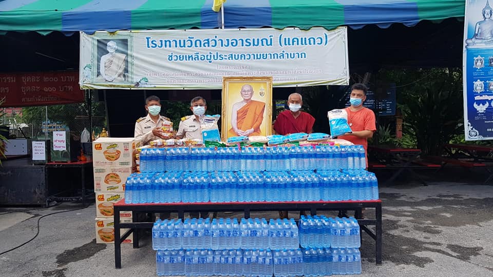 นายประทีป เหลืองทองคำ กำนันตำบลบางกระเบา อ.นครชัยศรี และนายอิฐศิลา กิ่งโสดา ผู้ใหญ่บ้านหมู่ 2 ต.บางกระเบา อ.นครชัยศรี เป็นตัวแทนชุมชน จากชาวบ้านใน ต.บางกระเบา เดินทางมารับมอบสิ่งของเครื่องอุปโภคบริโภค ข้าวสาร อาหารแห้ง น้ำดื่ม จากพระครูยติธรรมานุยุต หรือหลวงพ่อแป๊ะ เจ้าอาวาสวัดสว่างอารมณ์ เจ้าคณะตำบลบางกระเบา นำไปมอบชาวบ้านผู้ยากไร้ที่ได้รับความเดือดร้อนจากสถานการณ์การแพร่ระบาดของโรคโควิด 19 ใน จ.นครปฐม