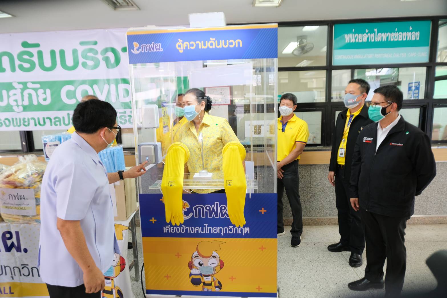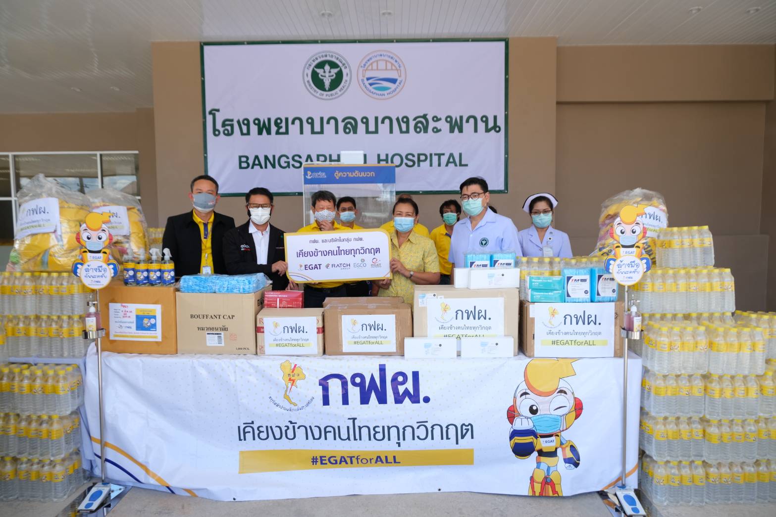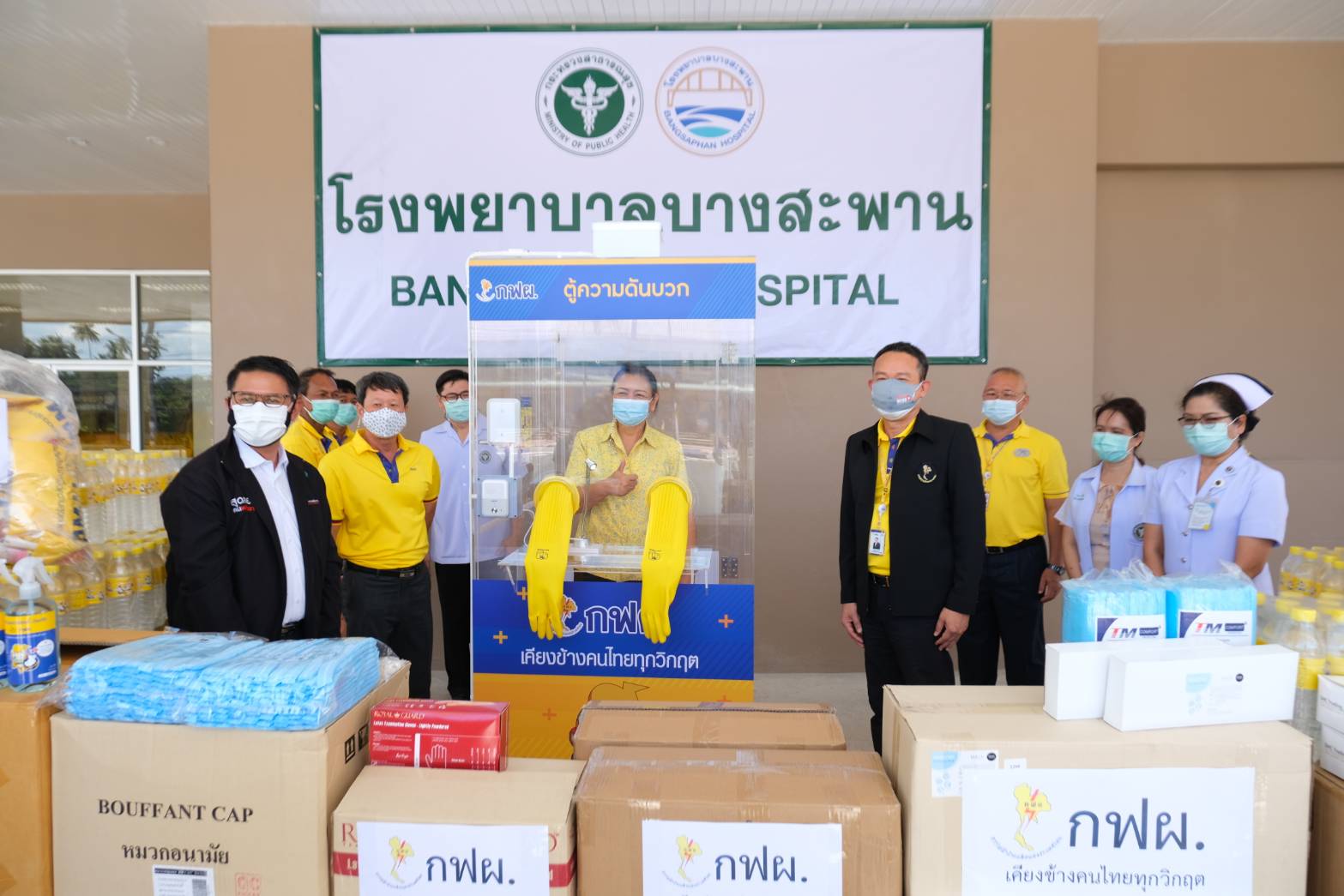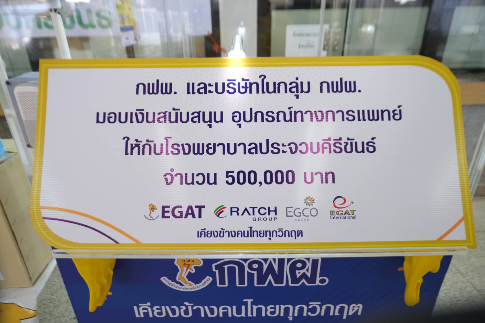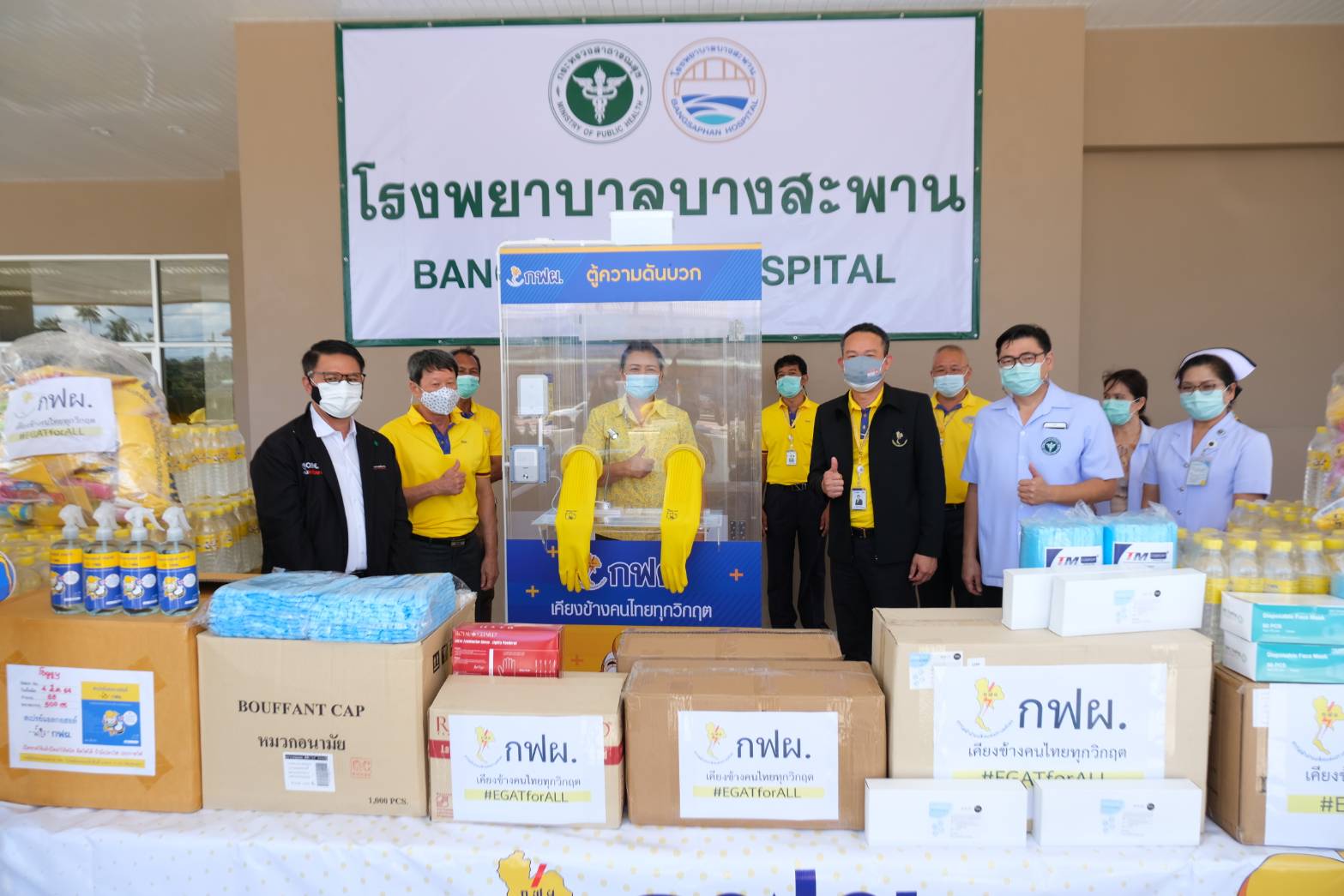 เมื่อวันที่ 13 พฤษภาคม 2564 เวลา 10.00 น. นาย อติชาติ โซวจินดา ผู้อำนวยการฝ่ายบริหารงานก่อสร้าง นายพุฒิขจร บุญมี ผู้ช่วยผู้อำนวยการฝ่ายปฏิบัติการเขตนครหลวง (ช.อปล-1 ) นายวิชัย ช่ออบเชย วศ.10 อหก. พร้อมทีมงาน อปล.ในพื้นที่ เป็นผู้แทน การไฟฟ้าฝ่ายผลิตแห่งประเทศไทย (กฟผ.) และบริษัทในกลุ่ม กฟผ. มอบเงินจำนวน 500,000 บาท เพื่อสนับสนุนอุปกรณ์ทางการแพทย์ พร้อมมอบอุปกรณ์เวชภัณฑ์เพื่อใช้ป้องกันการแพร่ระบาดของโรค COVID-19 ประกอบด้วย ตู้ตรวจโควิดความดันบวก 1 ตู้ เวชภัณฑ์ 10 รายการ น้ำดื่ม 200 แพ็ค ให้แก่โรงพยาบาลประจวบคีรีขันธ์