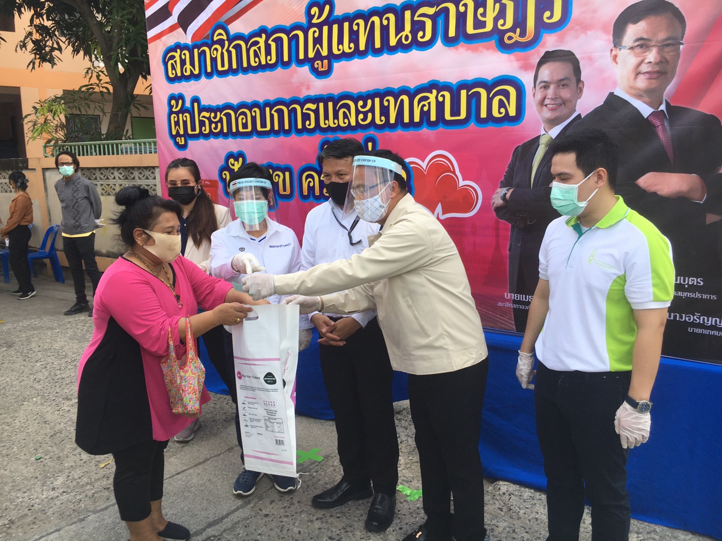 สมุทรปราการ ส.ส.ยงยุทธ แจกของให้ปชช.เพื่อบรรเทาความเดือดร้อนสถานการณ์โควิด19
