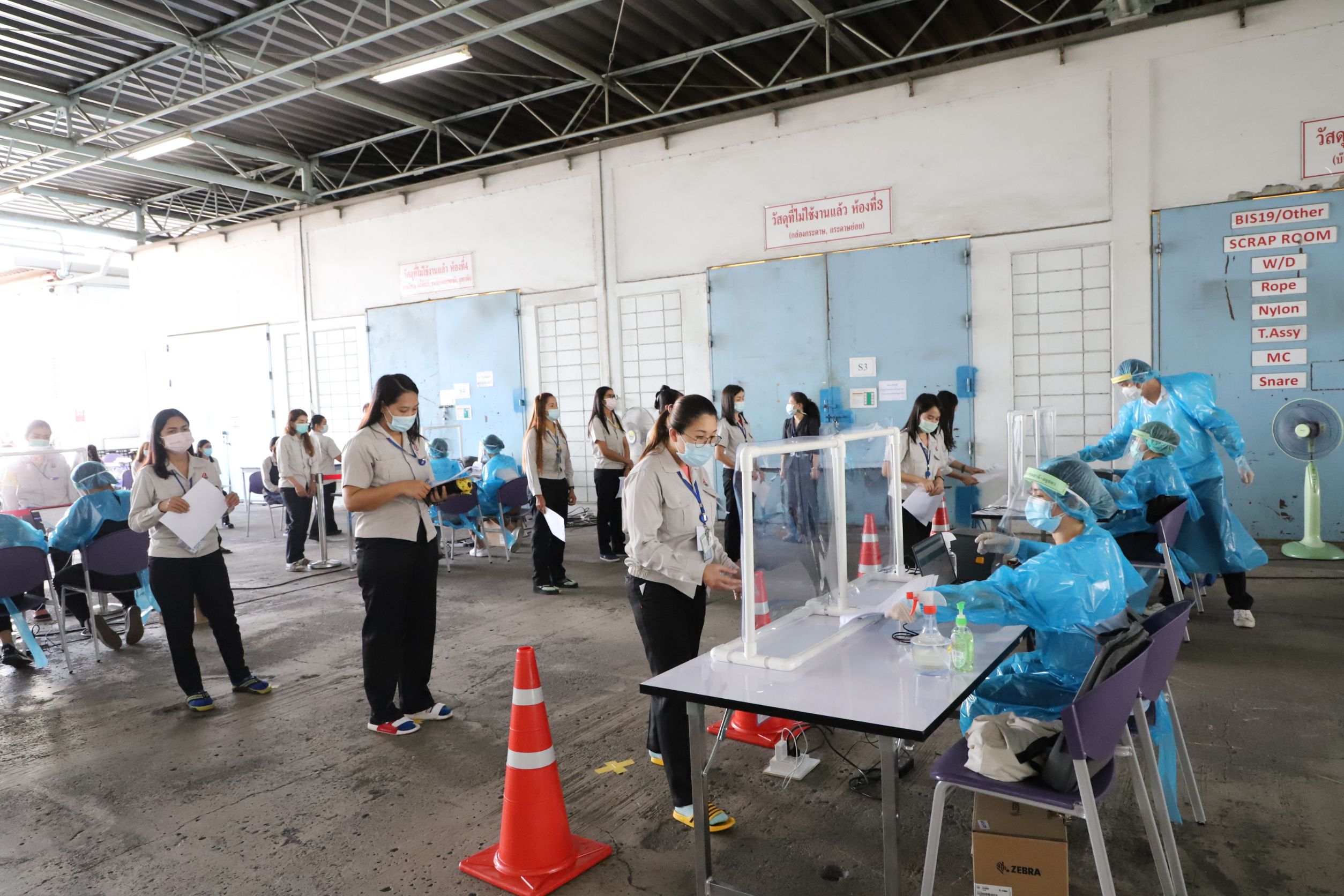 โดยเพิ่มจุดตรวจคัดกรองโควิด-19 เชิงรุกแก่แรงงานในสถานประกอบการในจังหวัดพื้นที่ควบคุมสูงสุด อาทิ นนทบุรี ปทุมธานี สมุทรปราการ ชลบุรี ระยอง สมุทรสาคร และพระนครศรีอยุธยา ทั้งนี้ กระทรวงแรงงาน ได้ออกมาตรการเพื่อสนับสนุนการดำเนินงานของรัฐบาลในการควบคุมการแพร่กระจายของเชื้อไวรัสโคโรนา 2019 หรือโควิด-19 (Coronaviruses Disease 2019) (COVID-19) เชิงรุกในสถานประกอบการ ซึ่งในวันนี้ผมได้มีโอกาสมาตรวจเยี่ยม และให้กำลังใจ พร้อมมอบหน้ากากอนามัยแก่ลูกจ้าง ผู้ประกันตน ที่เข้ารับการตรวจโควิด-19 เชิงรุก ซึ่งได้รับความร่วมมือจากสถานประกอบการในจังหวัดปทุมธานี โดยสำนักงานประกันสังคมจังหวัดปทุมธานี ร่วมมือจากสาธารณสุขจังหวัดปทุมธานี โรงพยาบาลการุณเวชปทุมธานี โดยมีเป้าหมายตรวจคัดกรองพนักงาน ลูกจ้าง ภายในบริษัทฯ ทั้งหมด 3,205 คน ดำเนินการตรวจ 2 วัน คือวันศุกร์ที่ 14 พ.ค.64 จำนวน 1,603 คน และวันจันทร์ที่ 17 พ.ค.64 อีก 1602 คน ซึ่งค่าใช้จ่ายในการตรวจ ลูกจ้าง ผู้ประกันตนไม่ต้องเสียค่าใช้จ่าย และจะทราบผลภายใน 24 – 48 ชั่วโมง ซึ่งหากพบผู้ติดเชื้อ ก็จะต้อง เข้าสู่กระบวนการควบคุมดูแลรักษาตามที่กระทรวงสาธารณสุขกำหนดอย่างทันท่วงที