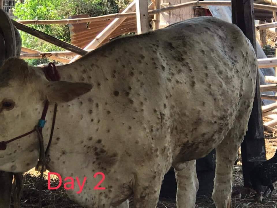 มีรายงานว่า สำหรับอาการของโรคจะพบตุ่มขึ้นตามตัวคล้ายอีสุกอีใส โรคนี้ยังไม่มียารักษาเฉพาะเพราะเกิดจากเชื้อไวรัส ให้รักษาตามอาการ ขณะนี้กรมปศุสัตว์กำลังเร่งนำเข้าวัคซีนเพื่อควบคุมโรค เน้นย้ำโรคนี้ระบาดเฉพาะในโคและกระบือไม่ติดต่อสู่คน เนื้อสัตว์สามารถบริโภคได้แต่ไม่แนะนำให้บริโภค อาการไม่รุนแรงแต่สามารถทำให้สัตว์เสียชีวิตได้เพียง0.5%โดยเฉพาะในลูกสัตว์และสัตว์ที่อ่อนแอ ขอให้ประชาชนรับทราบและช่วยกันเฝ้าระวังการติดต่อ โรคนี้ติดต่อทางแมลงดูดเลือดทุกชนิดแนวทางการป้องกันให้ฉีดพ่นยาฆ่าแมลงที่ตัวสัตว์คอกสัตว์ป้องกันไม่ให้แมลง เช่น เห็บ ยุง เหลือบกัดสามารถช่วยป้องกันการแพร่ระบาดได้