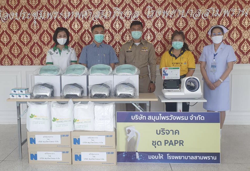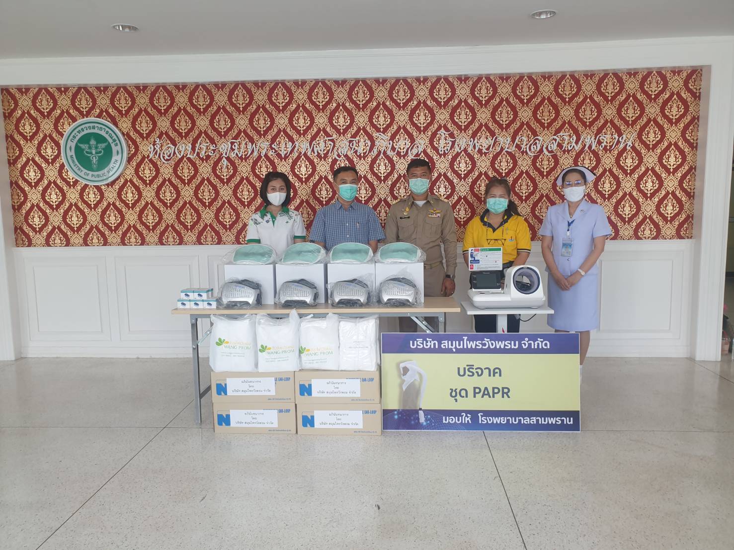 บริษัท สมุนไพรวังพรม จำกัด โดยนายวุฒิชัย วังพรม รองนายกเทศมนตรีเมืองไร่ขิง บริจาคอุปกรณ์ทางการแพทย์ รวมมูลค่า 207,000 บาท ประกอบด้วย ชุดอุปกรณ์ PAPR จำนวน 4ชุด ราคา152,000บาท และ เครื่องวัดความดันสอดแขน จำนวน1เครื่อง ราคา55,000บาท โดยมีนายแพทย์ ทินกร ชื่นชม รองนายแพทย์สาธารณสุข ผู้อำนวยการโรงพยาบาลสามพราน ร่วมด้วยนางพัชรี เกสรบุญนาค รองผู้อำนวยการโรงพยาบาลสามพรานและแพทย์พยาบาล ร่วมรับมอบ เพื่อใช้ในการรักษาผู้ป่วยในสถานการณ์โรคระบาด โควิด-19