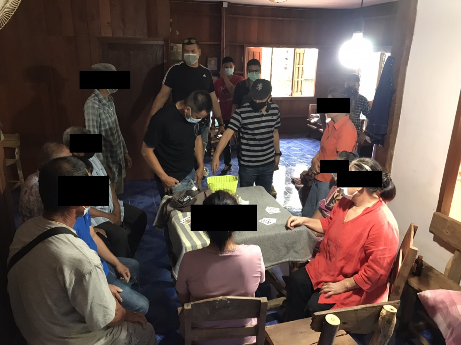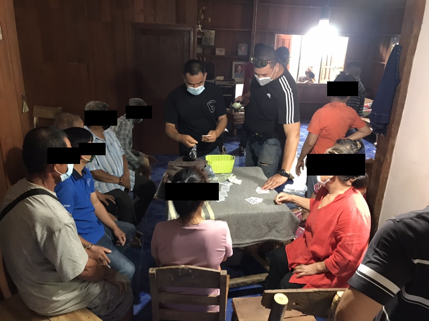 เจ้าหน้าที่ชุดจับกุม สภ.เชียงดาวฯ อันมี พ.ต.ต.อภิชัย พันธุ์คงชื่น สว.สส.ฯ, ร.ต.อ.คมสัน เสนากิตต์ , ร.ต.อ.ประเสริฐ กระทู้ , ร.ต.อ.ภาคภูมิ มณีจักร์ , ร.ต.ต.สลิล พิมพิรัตน์ ,ด.ต.ศักดิ์ชัย เตอเก,ด.ต.สมชาย เชื้อตรง, ด.ต.วิเชียร พรมคำตัน, ด.ต.ยรรยง คำตื้อ, ด.ต.อุบล แก้วเป็ง ,ส.ต.อ.พลวัฒน์ สุวรรณคำมูล ,ส.ต.ท.ณภัทร อินกงลาด พร้อมพวก จับข้อหา ร่วมกันลักลอบเล่นการพนันฯ, ฝ่าฝืน พ.ร.บ. ควบคุมโรคติดต่อของกลาง ไพ่ 1 สำรับ , ผ้าห่ม 1 ผืน , เงินสด 470 บาท , โต๊ะไม้ 1 ตัว , เก้าอี้ไม้ 4 ตัว ผู้ต้องหา10กว่าราย ที่จับกุมได้นอกจากนั้นหนีได้ตามระเบียบ. จนท.ตำรวจชุดจับกุมได้รับแจ้งจาก สายลับว่าที่บ้านไม่มีเลขที่บ้านป่าบง ม.1 ต.แม่นะ อ.เชียงดาว ฯ มีการลักลอบเล่นการพนันเอาทรัพย์สินกันโดยผิดกฎหมาย