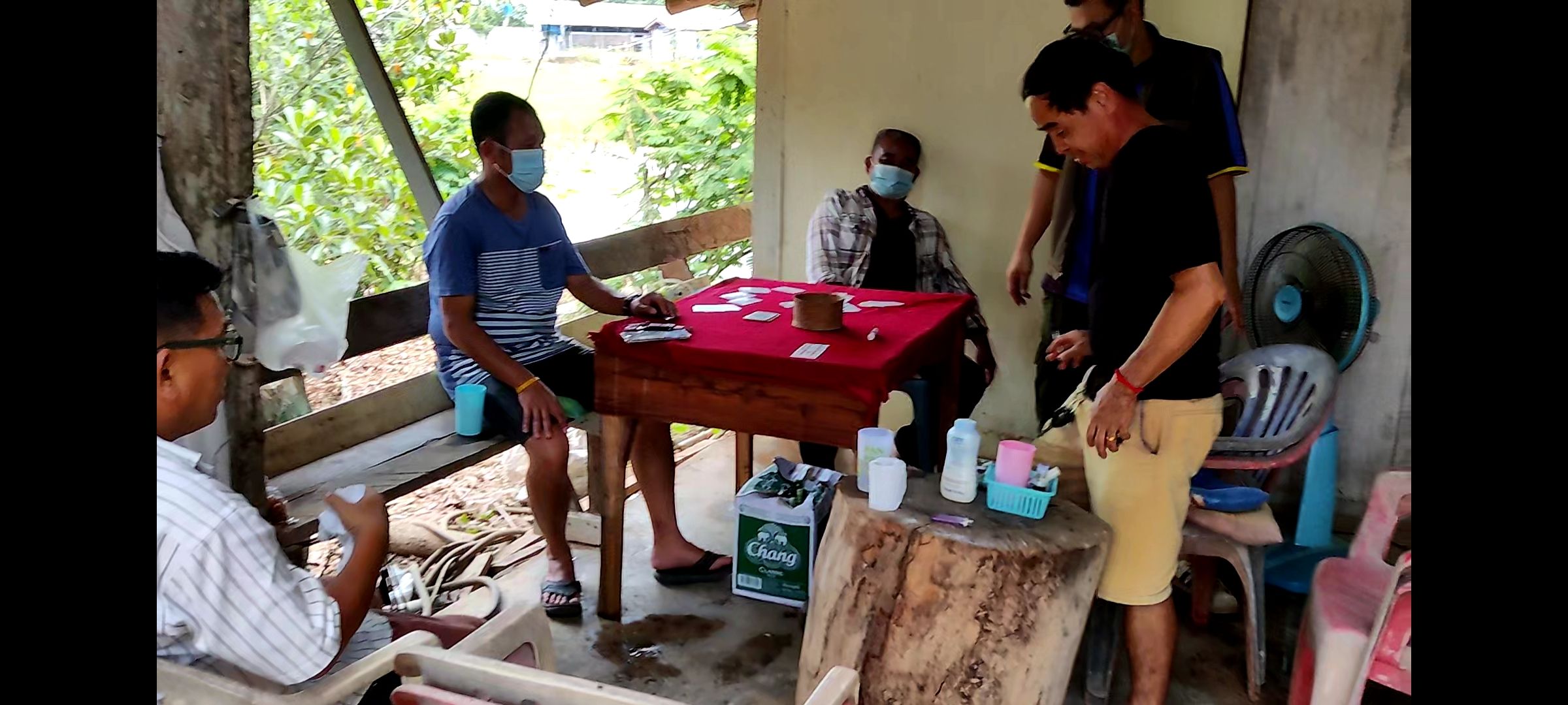 พร้อมด้วยของกลาง ไพ่ จำนวน 1สำรับ ผ้าห่มสีแดง จำนวน 1ผืน เงินสด จำนวน 135บาท โต๊ะไม้ จำนวน 1 ตัว พร้อมผู้ต้องหาที่จับได้4คน ซึ่งมีคนเล่นมากกว่านี้แต่ได้หลบหนีเอาตัวรอดไปได้ แต่4คนที่จับกุมได้นั้นกำลังนั่งเล่นรัมมี่อยุ่เพื่อเอาเงินกัน วิ่งไม่ทันจึงถูกจับได้ เหตุการณ์เนื่องจากมีสายลับหวังเงินรางวัลได้แจ้งกับทางเจ้าหน้ามี่ว่ามีการลักลอบเล่นพนั้นในพื้นที่ และได้ชี้เป้าให้เจ้าหน้าที่ทราบเป็นบ่อนวิ่ง ซึ่งทางเจ้าหน้าที่จะไม่ทราบเพราะจะนัดกันเฉพาะคนเล่นหมุนเวียนกันไปตามบ้านหรือสถานที่ต่างๆเพื่อหลบการจับกุมของเจ้าหน้าที่แต่ในวันนี้ก็สามารถจับได้ส่วนหนึ่งซึ่งถือว่าละเมิดกฏฝ่าฝืนไม่ปฏิบัติตาม พ.ร.ก.การบริหารราชการในสถานการณ์ฉุกเฉิน พ.ศ. 2548ฯ จึงนำตัว4คนให้พนักงานสอบสวนเพื่อดำเนินคดีตามกฏหมายต่อไป