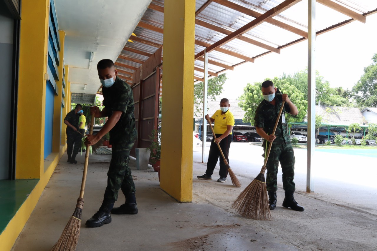 ศูนย์ปฏิบัติการบริหารการแก้ไขปัญหายาเสพติดชายแดนภาคเหนือ จัดกำลังพลจิตอาสาพัฒนา ร่วมกับ กองพันพัฒนาที่ 3 และคณะครู โรงเรียนบ้านศาลา ทำความสะอาดฉีดพ่นยาฆ่าเชื้อโควิด-19 ก่อนเปิดภาคเรียน
