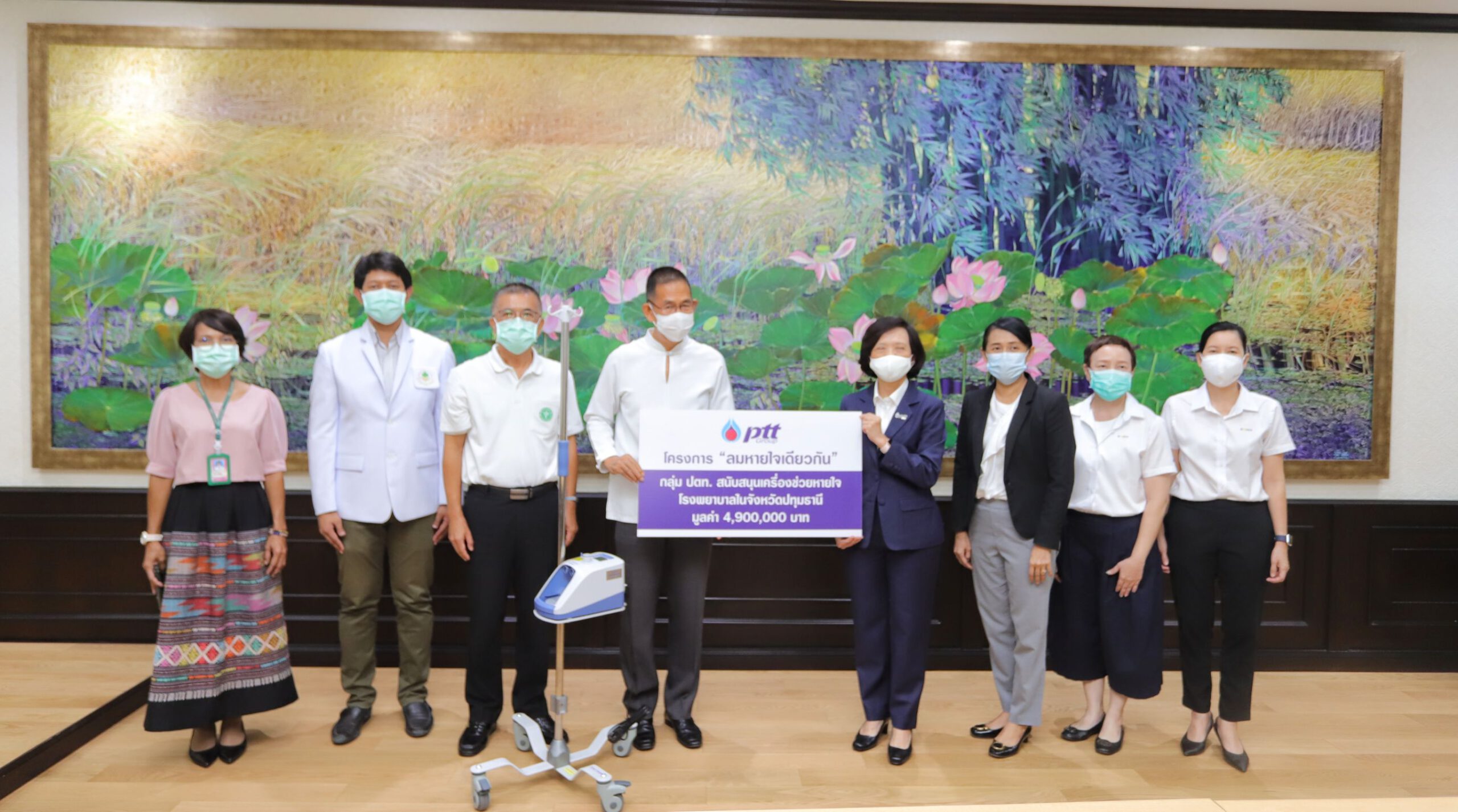 กลุ่มปตท .ส่งมอบเครื่องช่วยหายใจจำนวน 20 เครื่อง มูลค่า 4,900,000 บาทให้รพ.ในจังหวัดปทุมธานี ภายใต้โครงการลมหายใจเดียวกัน