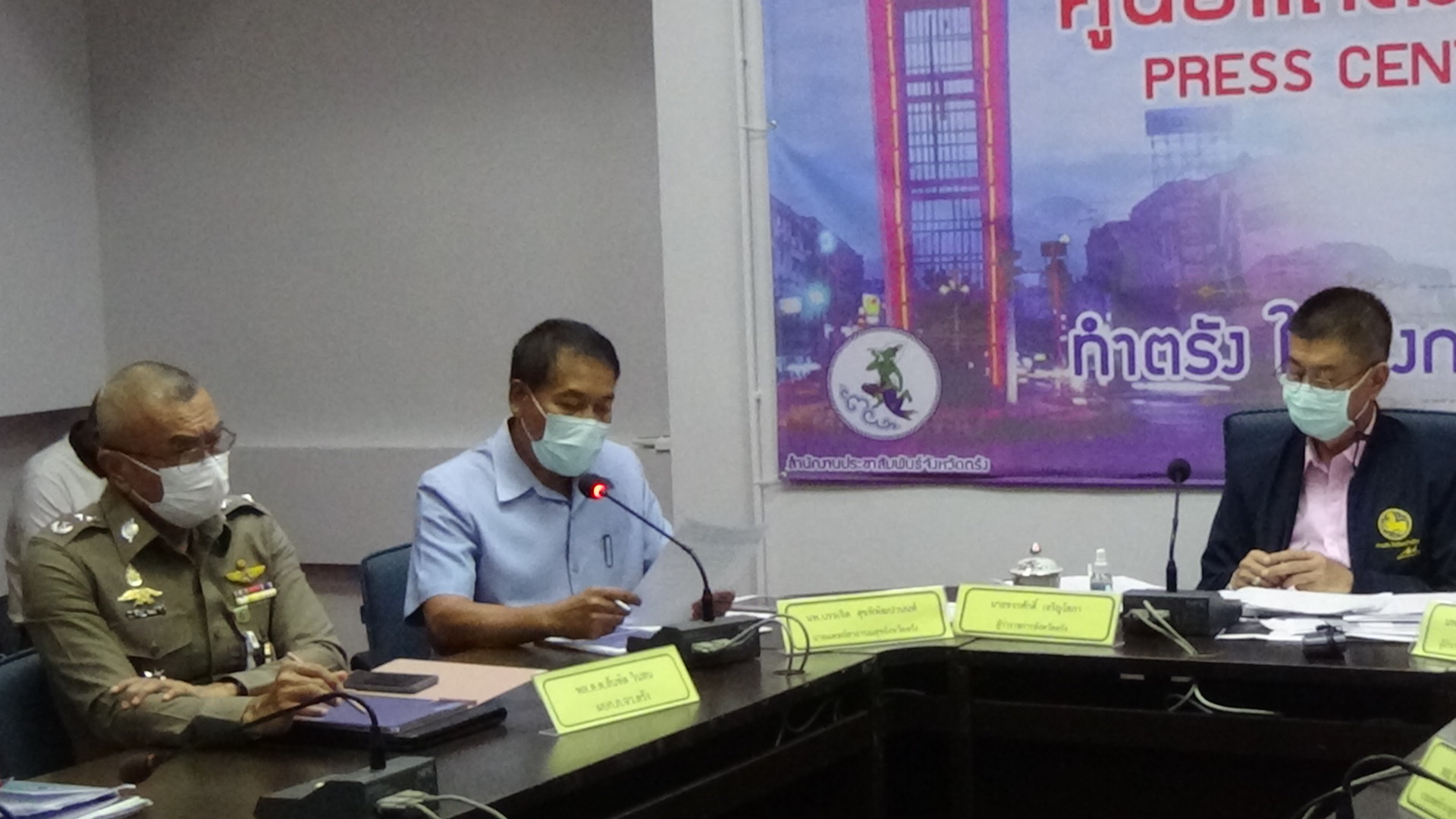 ที่ห้องแถลงข่าวศูนย์บริหารสถานการณ์โควิด -19 ชั้น 2 ศาลากลางจังหวัดตรัง นายขจรศักดิ์ เจริญโสภา ผู้ว่าราชการจังหวัดตรัง พร้อมด้วยนายแพทย์บรรเจิด สุขพิพัฒปานนท์ นายแพทย์สาธารณสุขจังหวัดตรัง, พล.ต.ต.สันทัด วินสน ผู้บังคับการตำรวจภูธรจังหวัดตรัง,นายแพทย์สมบัติ สธนเสาวภาคย์ ผู้อำนวยการโรงพยาบาลตรัง, นายแพทย์ตุลกานต์ มักคุ้น นายแพทย์ชำนาญการพิเศษ โรงพยาบาลตรัง, แพทย์หญิงทิพย์ลดา บุญชัย นายแพทย์ชำนาญการ โรงพยาบาลตรัง ร่วมกันแถลงข่าวสถานการณ์โควิด-19 ในพื้นที่จังหวัดตรัง กล่าวว่า จังหวัดตรังมีผู้เสียชีวิตจากโควิด 1ราย ซึ่งเสียชีวิตเมื่อวานนี้(24 พ.ค.2564) เป็นเพศชาย อายุ 54 ปี ชาวตำบลเขาวิเศษ ซึ่งอยู่ในกลุ่มคลัสเตอร์เขาวิเศษ อำเภอวังวิเศษ จังหวัดตรัง โยผู้เสียชีวิตเข้ารับการรักษาเป็นระยะเวลา 15 วัน ก่อนที่จะเสียชีวิต ซึ่งการเผาศพเป็นไปตามที่กำหนด ขณะนี้ทางจังหวัดตรัง มีมาตรการช่วยเหลือครอบครัวผู้เสียชีวิตจากโควิด -19 ศพละ 1หมื่น 2 พันบาท ซึ่งเป็นการช่วยเหลือในเรื่องของค่าทำศพ ขณะนี้มียอดผู้ป่วยติดเชื้อสะสมในการระบาดรอบเดือนเมษายน 2564(1 เมษายน 2564 – 25 พฤษภาคม 2564) จำนวน 331 ราย เสียชีวิต 1 ราย ซึ่งวันนี้พบผู้ป่วย 1 ราย เป็นผู้ป่วยเพศหญิง อายุ 64 ปี ภูมิลำเนาตำบลหนองตรุด อำเภอเมืองตรัง ซึ่งหากพิจารณาจากไทม์ไลน์ของผู้ป่วยรายนี้แล้วพบว่า มีการเดินทางจากพื้นที่เสี่ยงของบุคคลในครอบครัว รวมถึงการเดินทางไปในพื้นที่เสี่ยงของตัวผู้ป่วยเองด้วย