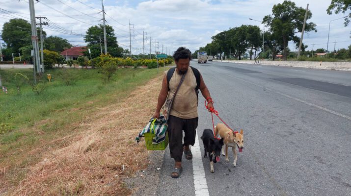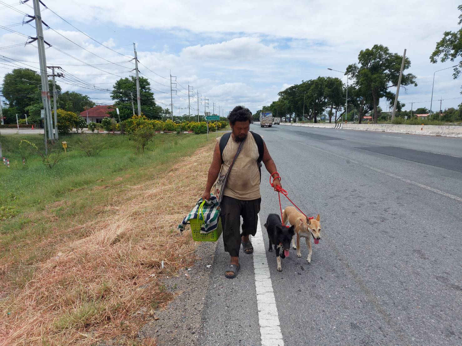 สิงห์บุรี หนุ่มพิษณุโลกหอบหมา เดินเท้า สิงห์บุรี -พิษณุโลก