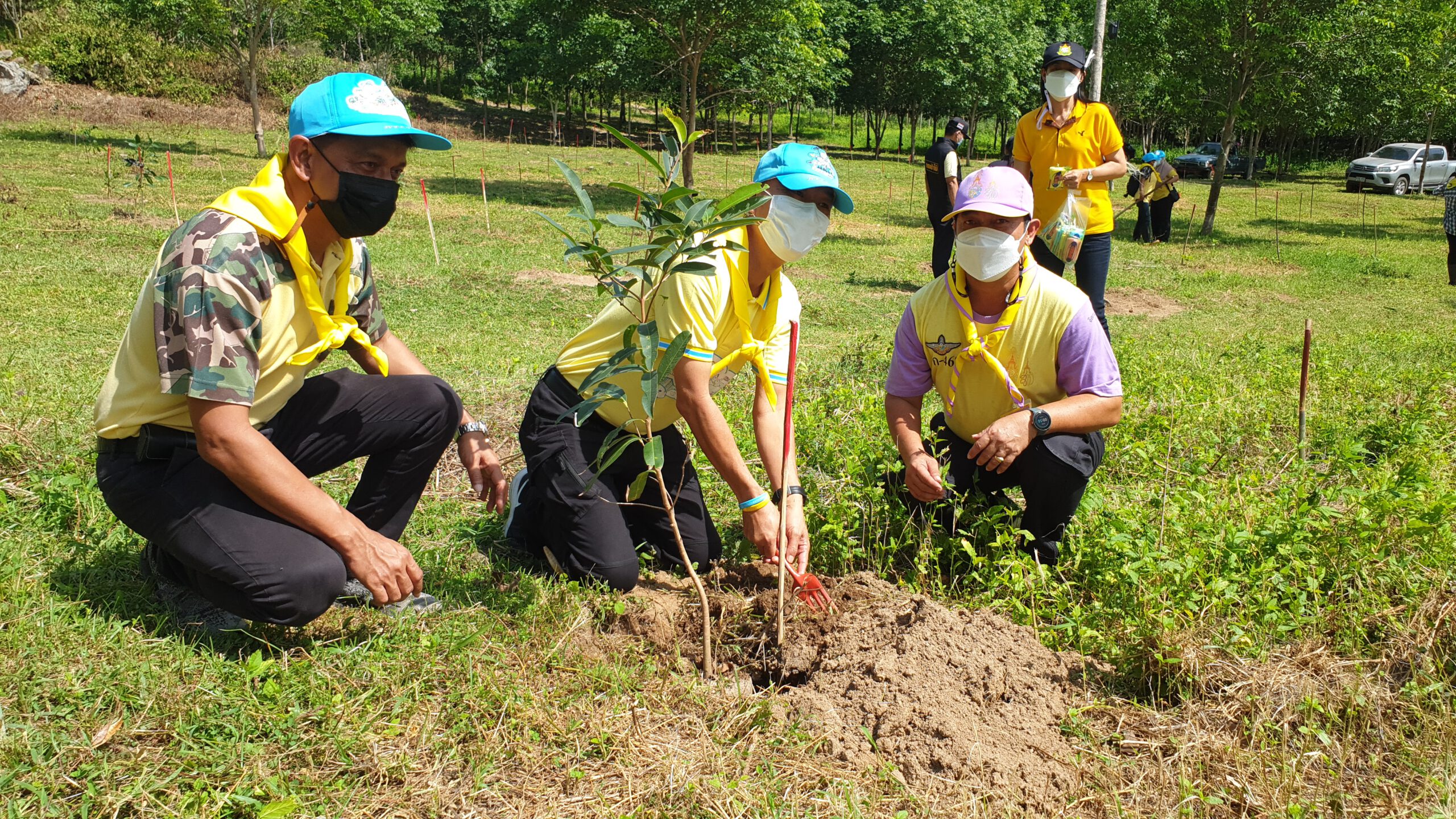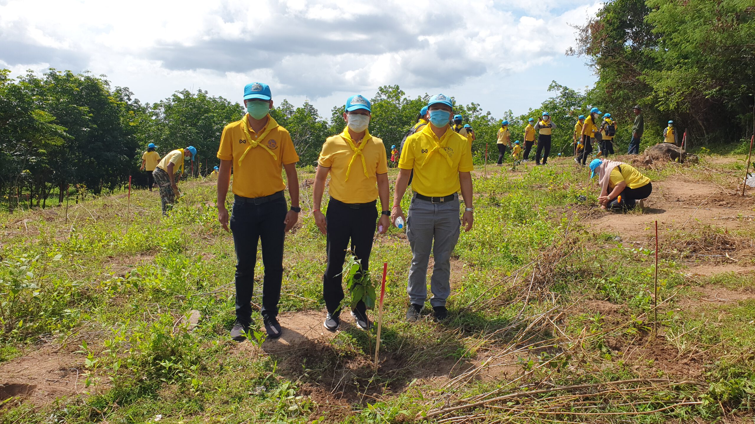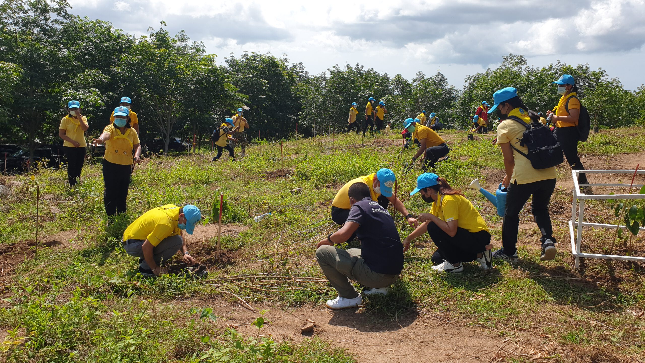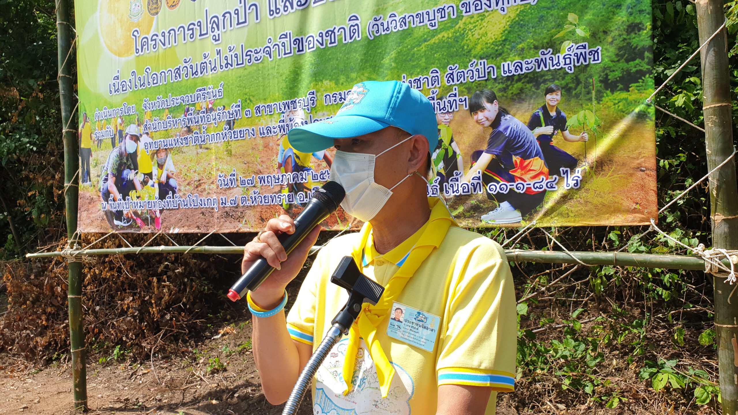 โดยได้ร่วมกันปลูกต้นพันธุ์กล้าไม้หลากหลายชนิด ประกอบด้วย ต้นมะค่าโมง ต้นมะขามป้อม ต้นหว้า ต้นพะยอม ต้นสัก ต้นพยูง ต้นเหลียง ต้นตะแบก ต้นเสลา รวมจำนวน 500 ต้น บนเนื้อที่ 11 ไร่ ณ บริเวณแปลงปลูกป่าในเขตอุทยานแห่งชาติน้ำตกห้วยยาง บ้านโป่งเกตุ หมู่ 7 ตำบลห้วยทราย อำเภอเมือง ประจวบคีรีขันธ์ ซึ่งมีนายจำลอง เทพทับทิม อายุ 65 ปี เป็นผู้ครอบครองการใช้ประโยชน์มาก่อนมีประกาศเป็นเขตอุทยาน ทั้งนี้เพื่อสนองพระราชปณิธานพระบาทสมเด็จพระเจ้าอยู่หัว “เราทำความดี ด้วยหัวใจ”และช่วยเพิ่มพูนทรัพยากรป่าไม้อันเป็นการบำเพ็ญประโยชน์ให้แก่ประเทศชาติ เนื่องในวันต้นไม้ประจำปีของชาติ