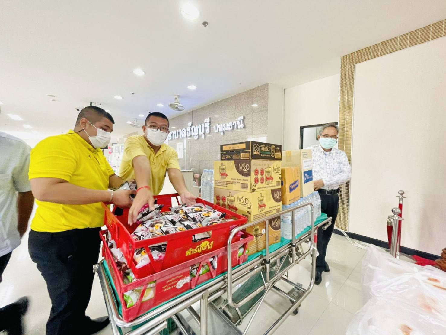 ปทุมธานี วัฒนธรรม“ปันน้ำใจ คนไทย ไม่ทิ้งกัน” ใช้พลังบวร มอบเครื่องอุปโภคบริโภคแก่บุคลากรทางการแพทย์