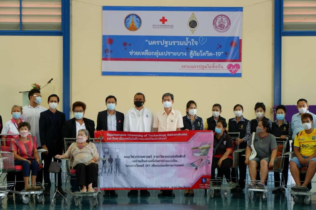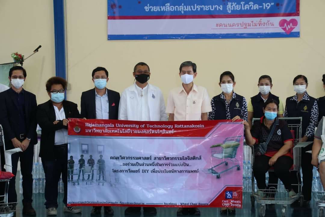 ในวันพฤหัสบดีที่ 27 พฤษภาคม 2564 มหาวิทยาลัยเทคโนโลยีราชมงคลรัตนโกสินทร์ โดย ผศ.ศิวะ วสุนธราภิวัฒก์ มอบหมายให้อาจารย์ประพัฒน์ สีใส รองอธิการบดี เป็นตัวแทนมหาวิทยาลัยร่วมกับคณะวิศวกรรมศาสตร์ สาขาวิชาวิศวกรรมโลจิสติกส์ มอบวีลแชร์ DIY เพื่อประโยชน์ทางการแพทย์ ซึ่งเป็นส่วนหนึ่งในการร่วมแบ่งปัน ช่วยเหลือกลุ่มเปราะบางสู้ภัยโควิด 19 โดยมี นายสุรศักดิ์ เจริญศิริโชติ ผู้ว่าราชการจังหวัดนครปฐม เป็นผู้รับมอบแก่พี่น้องชาวจังหวัดนครปฐม