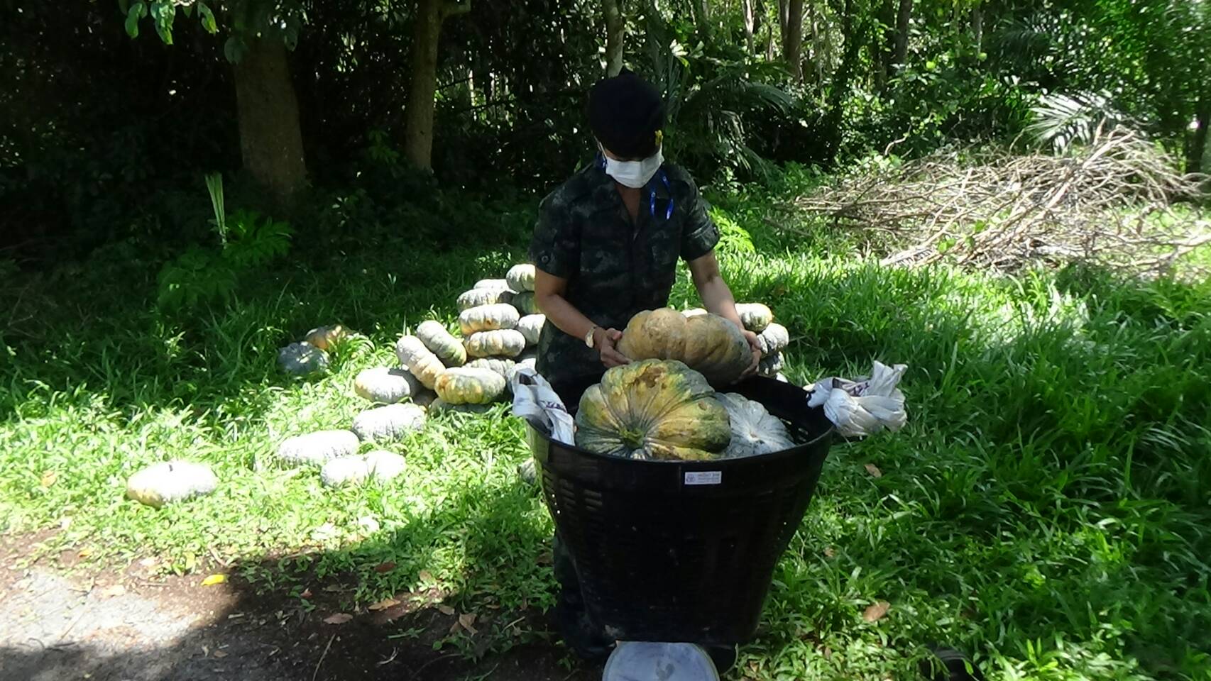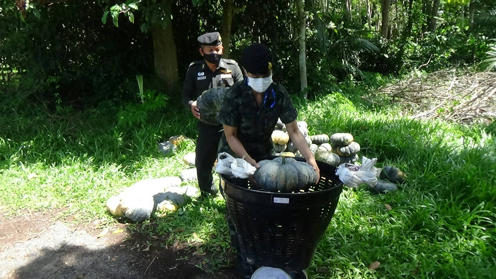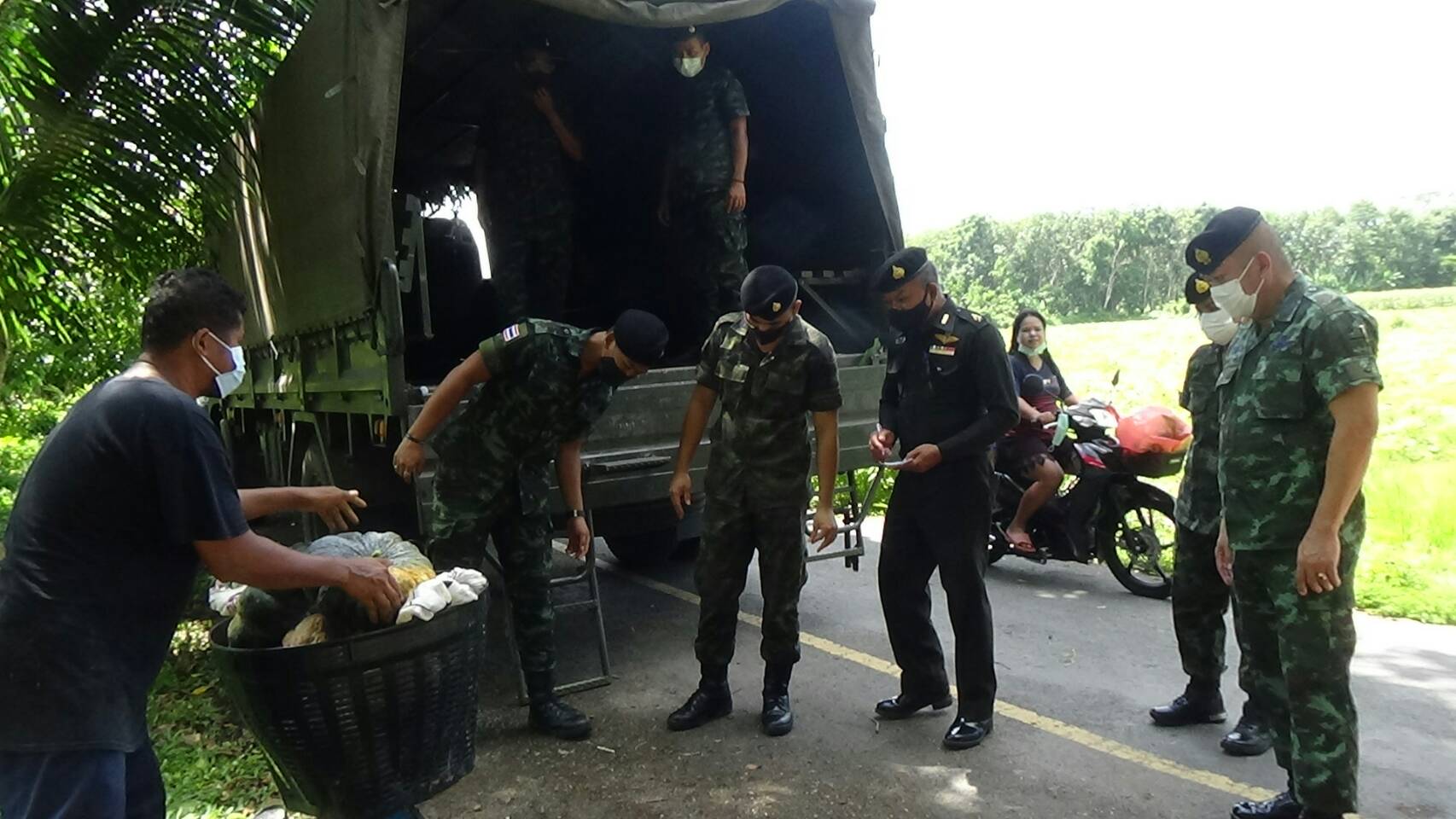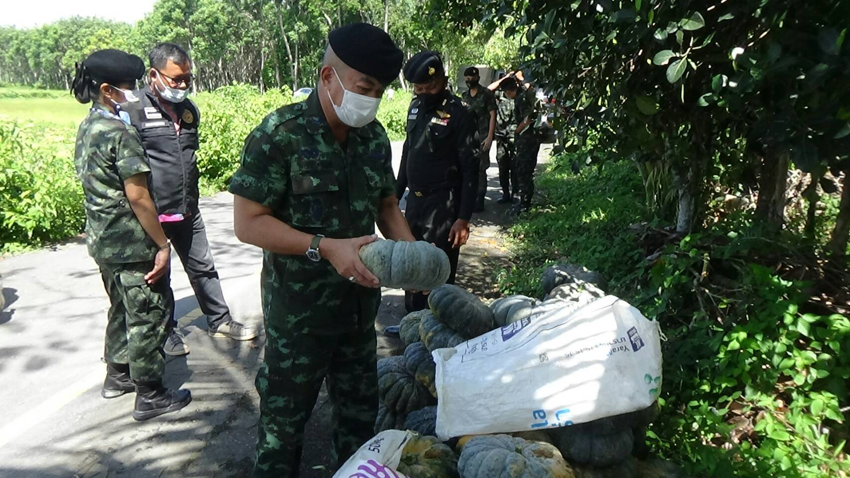 มณฑลทหารบกที่ 43 ค่ายเทพสตรีศรีสุนทร อำเภอทุ่งสง จังหวัดนครศรีธรรมราช เดินทางมาซื้อฟักทองในพื้นที่จังหวัดตรัง เพื่อช่วยเหลือเกษตรกรที่กำลังเดือดร้อนที่ประสบปัญหาพืชผลทางการเกษตรตกต่ำ เนื่องจากได้รับผลกระทบจากการแพร่ระบาดโควิด -19 ตามนโยบายของผู้บัญชาการทหารบก