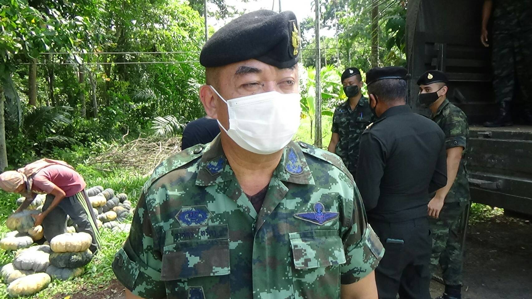 ทางด้าน พล.ต.ภาสกร ทวีตา ผู้บัญชาการมณฑลทหารบกที่ 43 ค่ายเทพสตรีศรีสุนทร อำเภอทุ่งสง จังหวัดนครศรีธรรมราช กล่าวว่า จากสถานการณ์การแพร่ระบาดของโควิด -19 ทำให้ประชาชนรวมถึงเกษตรกร ได้รับความเดือดร้อนเป็นอย่างมาก โดยเฉพาะเกษตรกรที่ปลูกฟักทองในจังหวัดตรัง ที่กำลังได้รับความเดือดร้อนจากปัญหาผลผลิตจำนวนมากและพ่อค้า แม่ค้า ไม่สามารถเดินทางมารับซื้อได้ เนื่องจากเกรงว่าจะเป็นการแพร่ระบาดของโควิด-19 การที่พ่อค้า แม่ค้า ไม่เดินทางมารับซื้อฟักทอง ส่งผลกระทบโดยตรงตอเกษตรกร ทางผู้บัญชาการทหารบก ได้สั่งการให้หน่วยทหารทุกพื้นที่ ออกมารับซื้อผลผลิตทางการเกษตรของเกษตรกร เพื่อบรรเทาความเดือดร้อนของเกษตร ในส่วนของมณฑลทหารบกที่ 43 ค่ายเทพสตรีศรีสุนทร อำเภอทุ่งสง จังหวัดนครศรีธรรมราช ซึ่งมีพื้นที่รับผิดชอบในจังหวัดตรังด้วย จึงเดินทางมาซื้อฟักทองของเกษตรกร เพื่อนำไปทำอาหารเลี้ยงกำลังพลภายในค่ายฯรวมถึงแจกให้กับครอบครัวกำลังพล และแจกให้กับประชาชนที่ได้รับความเดือดร้อนจากโควิด-19 โดยซื้อฟักทองจำนวน 1,500 กิโลกรัม ราคากิโลกรัมละ 5 บาท ซึ่งได้สร้างความดีใจให้กับเกษตรกรเป็นอย่างมากที่ทหารมาช่วยเหลือโดยการซื้อผลผลิตทางการเกษตร