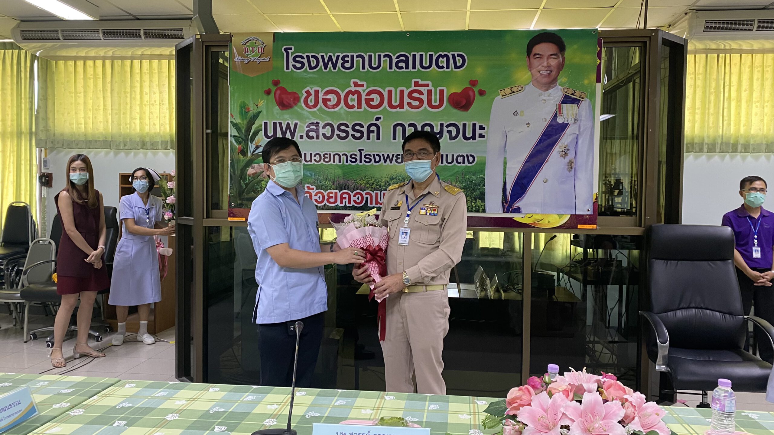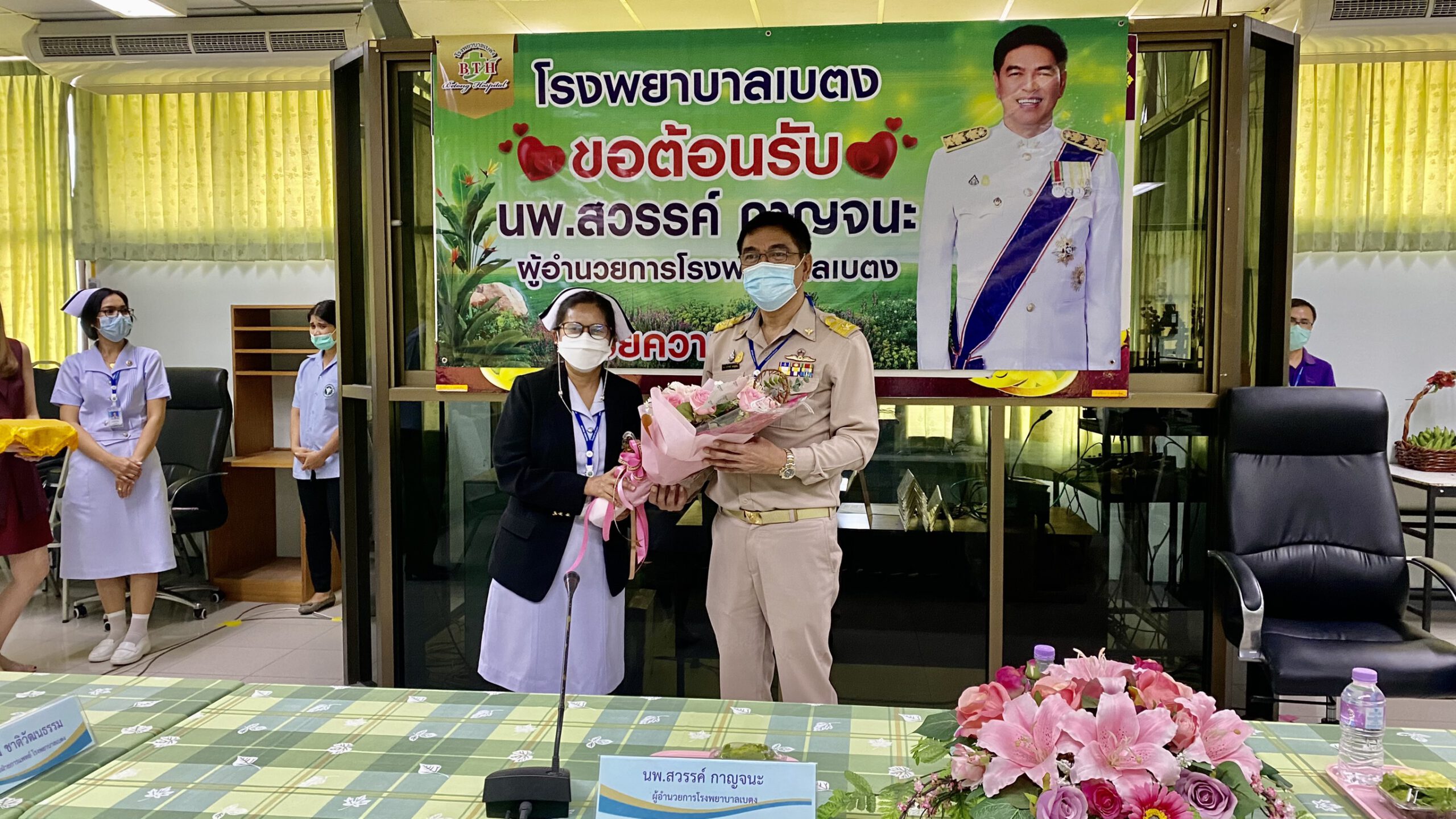 ผู้สื่อข่าวรายงานว่าณ ห้องประชุม รพ.เบตง จังหวัดยะลา นพ.สวรรค์ กาญจนะ ผู้อำนวยการ รพ.เบตงเดินทางมารับตำแหน่ง ทั้งนี้ทีมบริหารนพ.จิตติ จันทรมงคล รักษาการผู้อำนวยการพญ.ทับทิม วัฒนธรรม รองผู้อำนวยการฝ่ายการแพทย์ คณะกรรมการบริหาร ชาวรพ.เบตงร่วมต้อนรับอย่างอบอุ่น โดยนพ.จิตติ ได้แต่งกลอนรับดังนี้ ผู้ให้ย่อม เป็นที่รัก ประจักษ์แท้ ผู้ดูแล ทุกข์สุขทั่ว ทุกสถาน ให้ทุกท่าน ถ้วนทุกที่ เท่าเทียมทัน พัฒนาสารพัน นั้นเชี่ยวชาญ ทั้งความรู้ วิชาการ ชาญฉลาด ความสามารถ ประจักษ์ผล คนรุ่นหลัง ผลงานเด่น ส่งให้เห็น ซึ่งพลัง เป็นแบบอย่าง ให้เราท่าน นั้นก้าวตาม..นพ.สวรรค์ กล่าวเพิ่มเติมว่าว่า จะทำหน้าที่ที่ได้รับผิดชอบให้ดีที่สุด เป็นที่พึ่งของประชาชน ด้วยความสุจริตโปร่งใส ซื่อสัตย์สุจริต ส่งเสริมความสุขของบุคลากรและประชาชนผู้มารับบริการ