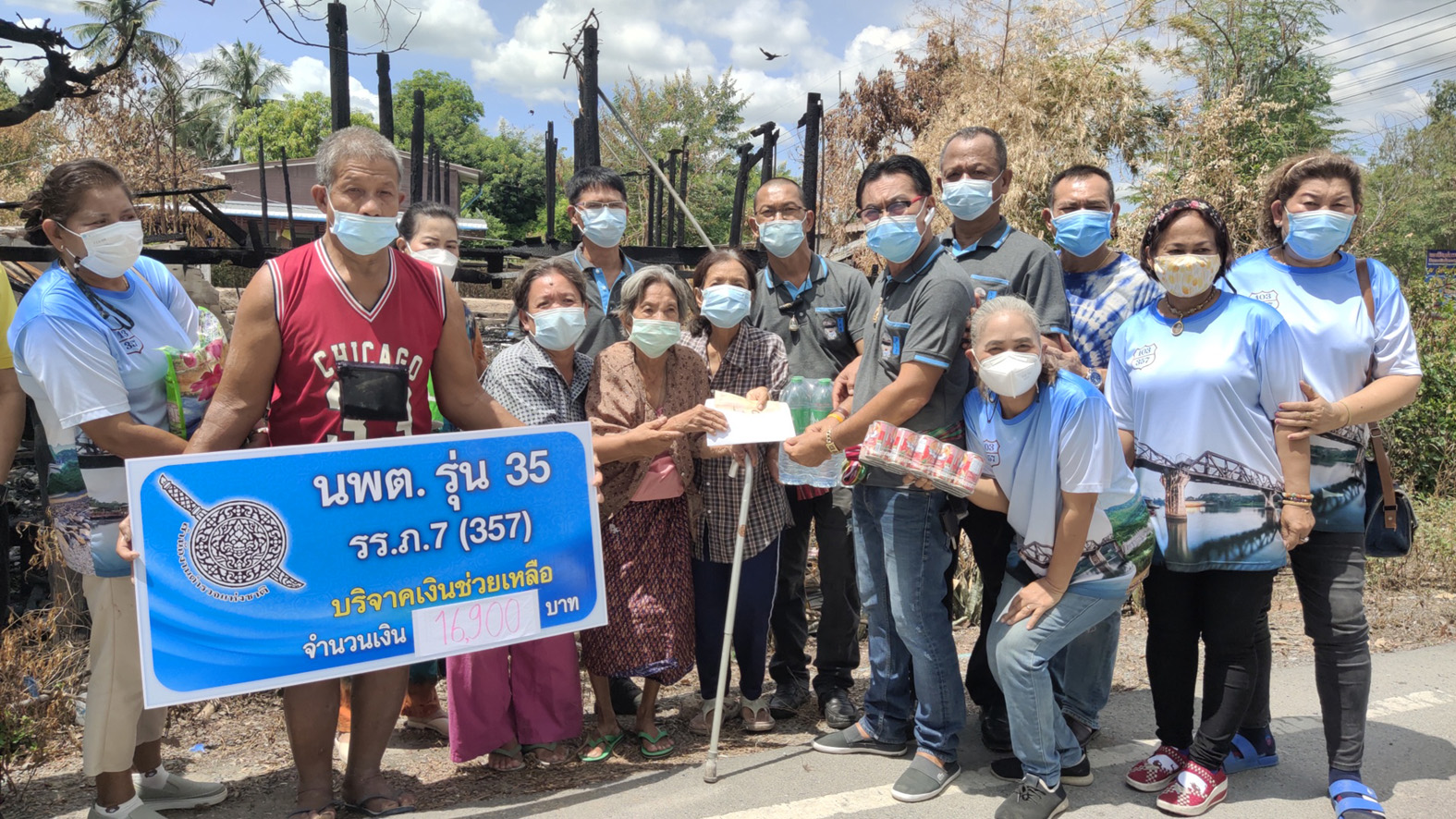 ล่าสุด พ.ต.ท.บุญเลิศ เอื้อเฟื้อ ร.ต.ท.เสน่ห์ โคกทอง ร.ต.ท.สันติ พงษ์สุวรรณ ร.ต.ท.สมคิด อุ่มมล ส.ต.อ.ทศพล ยิ้มยวน อดีตประธานสหกรณ์การเกษตรเพื่อการตลาดลูกค้า ธ.ก.ส.จำกัด (สกต.สุพรรณบุรี) ร่วมกันเป็นตัวแทนเพื่อนข้าราชการตำรวจรุ่น 35 รร.ภ.7 (นครปฐม) นำเงินและของใช้จำเป็น เครื่องอุปโภคบริโภค ข้าวสาร อาหารแห้ง และน้ำดื่ม มามอบให้กับครอบครัวบ้านที่ถูกไฟไหม้เสียหาย เพื่อเป็นการกำลังใจให้ดำรงชีวิตต่อไป ตำรวจไม่ทอดทิ้งประชาชน ขณะที่นายศรายุทธ ยิ้มยวน ที่ปรึกษารัฐมนตรีช่วยว่าการกระทรวงเกษตรและสหกรณ์ มาเยี่ยมให้กำลังใจนำเงินและสิ่งของมาช่วยเหลือเบื้องต้น โดยมีนายอำนาจ เพ็ชรวงษ์ นายก อบต.หนองผักนาก นายสรายุทธ หอมจันทร์ กำนัน ต.หนองผักนาก เป็นตัวแทนเจ้าของบ้านรับมอบเงินและสิ่งของ พร้อมกับเป็นตัวแทนกล่าวขอบคุณคณะข้าราชการตำรวจรุ่น 35 รร.ภ.7 (นครปฐม) พร้อมเพื่อนๆร่วมรุ่นที่ห่วงใยประชาชน และขอบคุณทุกคนที่มีจิตศรัทธาใจบุญร่วมกันนำเงินและสิ่งของมามอบให้กับผู้ที่ได้รับความเดือดร้อนจากอัคคีภัยครั้งนี้