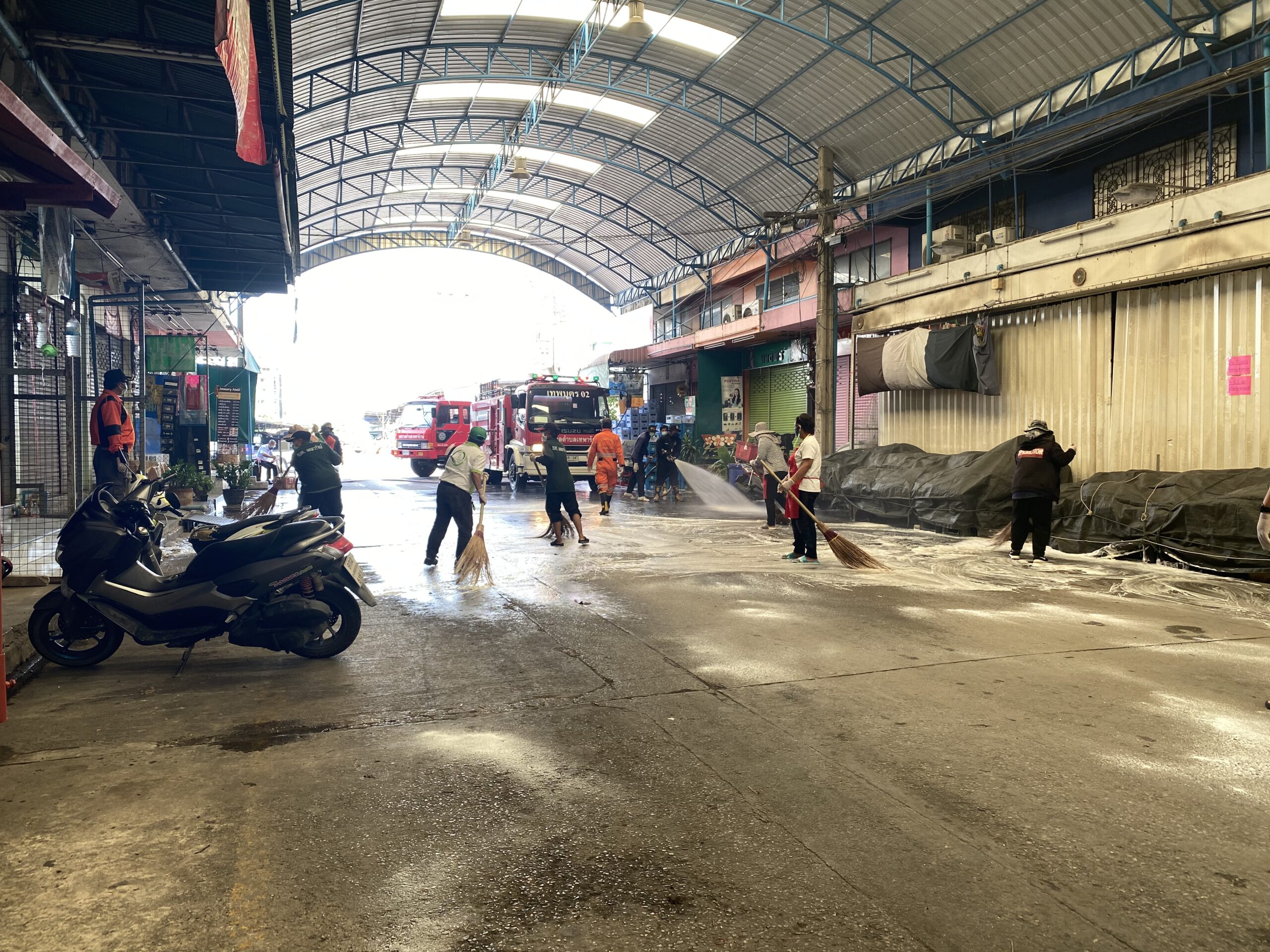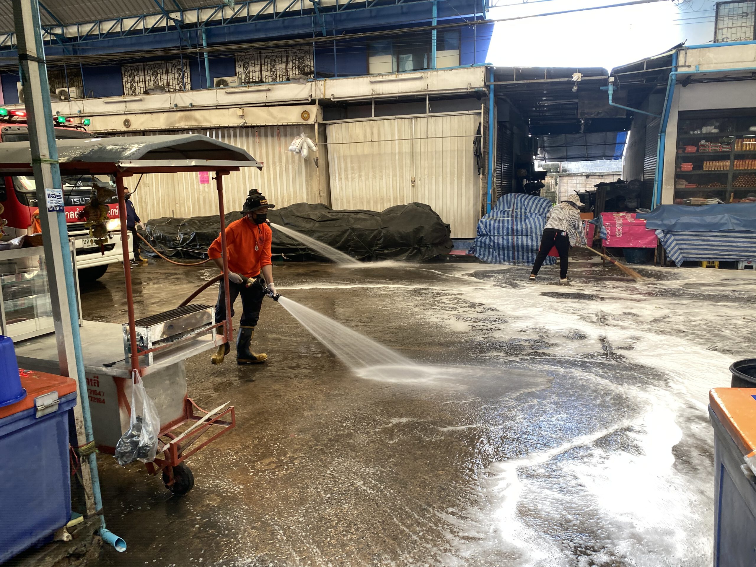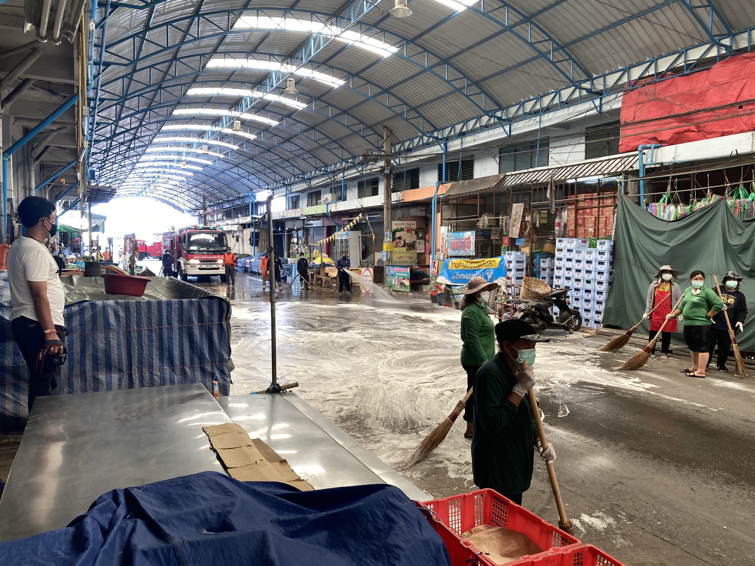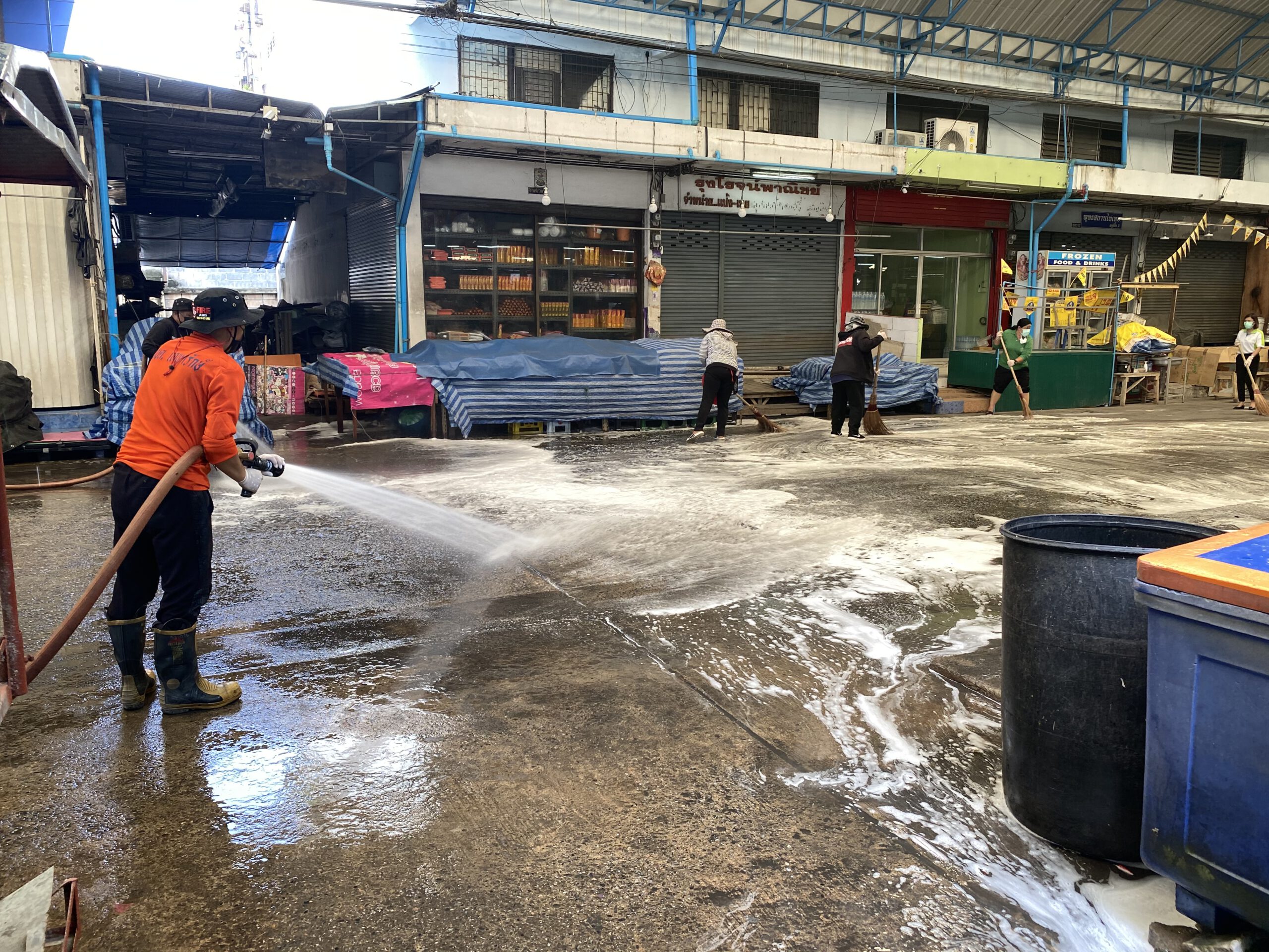 *****และยังทราบมาว่ามีผู้ติดเชื้ออยู่ในตลาดแห่งนี้ก็เลยต้องรีบทำตามมาตรการของกระทรวงสาธารณสุข ทำความสะอาดทุกซอกทุกมุมของตลาดและประชาสัมพันธ์ขอความร่วมมือพ่อค้าแม่ค้าให้หยุดขายของเป็นเวลา 3 วันและจะมีการฉีดพ่นน้ำยาฆ่าเชื้อซ้ำอีกครั้ง ส่วนร้านไหนที่ทราบว่ามีผู้ติดเชื้อโควิดก็จะปิดเป็นเวลา 14 วัน ตามมาตรการของรัฐ ขณะเดียวกันที่ตลาดแห่งนี้จะเน้นเรื่องความสะอาดอยู่แล้วและคัดกรองทุกคนที่เข้ามาในตลาด ให้ตรวจวัดอุณหภูมิ สวมหน้ากากอนามัย และล้างมือด้วยแอลกอฮอล์ เพื่อความปลอดภัยและสร้างความมั่นใจให้กับทุกคนทั้งพ่อค้าแม่ค้าและลูกค้าที่มาจับจ่ายซื้อของในตลาด