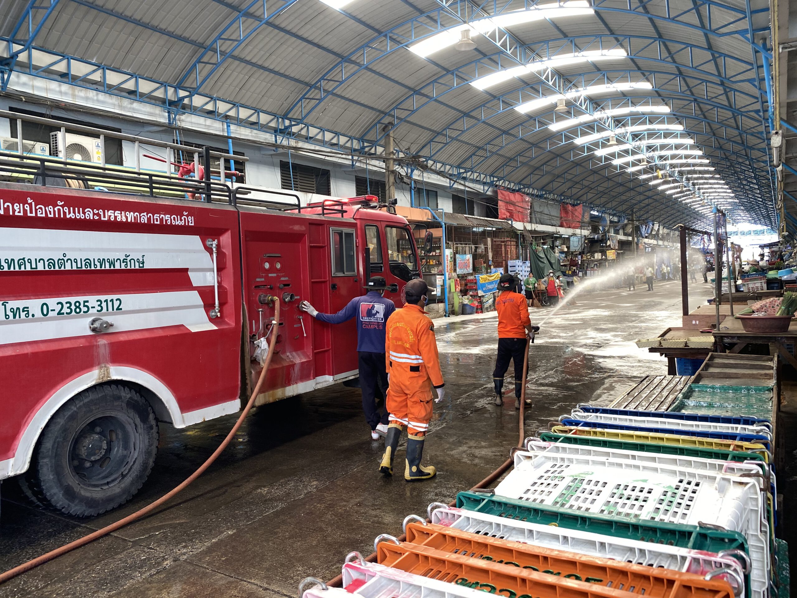 ***** เมื่อเวลา 10.00น.วันที่ 2มิ.ย 2564 นายชาตรี อยู่วัฒนะ ญาณิกาญจน์ อยู่วัฒนะ เจ้าของตลาดเทพประทาน(หนามแดง) ต.เทพารักษ์ อ.เมือง จ.สมุทรปราการ ได้ปิดตลาดเป็นเวลา 3 วัน เพื่อทำความสะอาดตลาดครั้งใหญ่ โดยเทศบาลตำบลเทพารักษ์ นำโดย นาย วชิรเชษฐ์ รุ่งธวัฒน์วงศ์ นายกเทศมนตรี ได้จัดเจ้าหน้าที่และรถน้ำฉีดพ่นทำความสะอาดตลาดและจะได้ทำการฉีดพ่นน้ำยาฆ่าเชื้อโควิดเป็นลำดับต่อไป