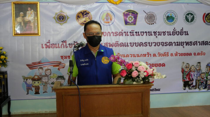 สถานีตำรวจภูธรห้วยยอด ร่วมกับผู้นำชุมชน และอำเภอห้วยยอด จังหวัดตรัง จัดโครงการดำเนินงานชุมชนยั่งยืน เพื่อแก้ไขปัญหายาเสพติดแบบครบวงจรตามยุทธศาสตร์ชาติ และมีการตรวจปัสสาวะผู้นำชุมชน เพื่อสร้างความมั่นใจให้กับประชาชนในหมู่บ้าน อีกทั้งการแพร่ระบาดของโควิด-19 นั้นมีผู้ติดยาเสพติดประเภทน้ำต้มพืชกระท่อมด้วยจึงต้องเร่งในการป้องกันและปราบปรามการแพร่ระบาดของยาเสพติด