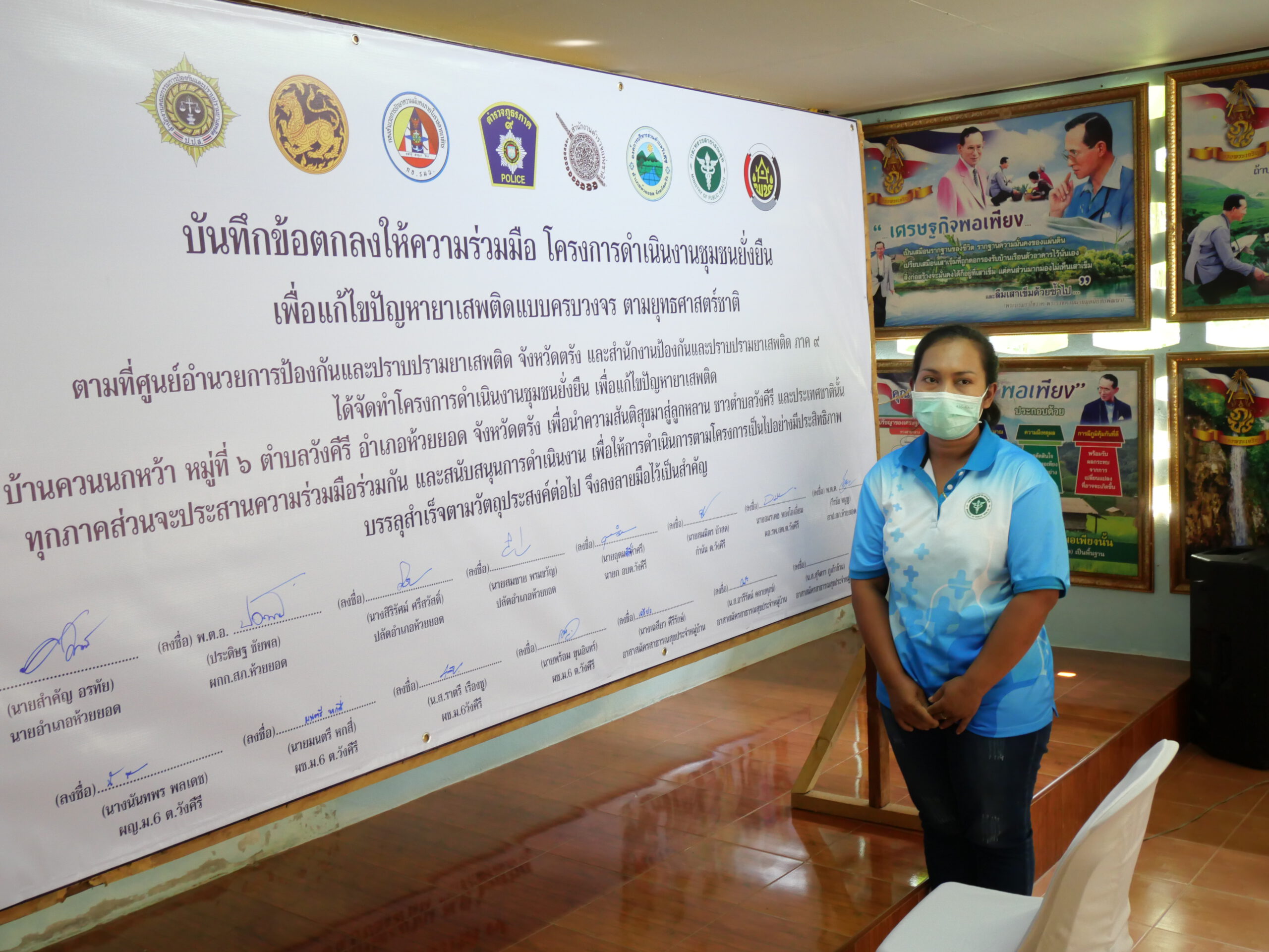 ทั้งนี้ได้มีการได้มีการลงนามบันทึกข้อตกลงกันทั้งหมู่บ้าน โดยมีผู้นำชุมชน เจ้าหน้าที่ที่เกี่ยวข้องเป็นผู้ดูแลในการดำเนินงาน นอกจากนี้ยังมีการตรวจปัสสาวะผู้นำชุมชน เพื่อสร้างความมั่นใจให้กับประชาชนในหมู่บ้าน อีกทั้งการแพร่ระบาดของโควิด-19 นั้นมีผู้ติดยาเสพติดประเภทน้ำต้มพืชกระท่อมด้วยจึงต้องเร่งในการป้องกันและปราบปรามการแพร่ระบาดของยาเสพติด
