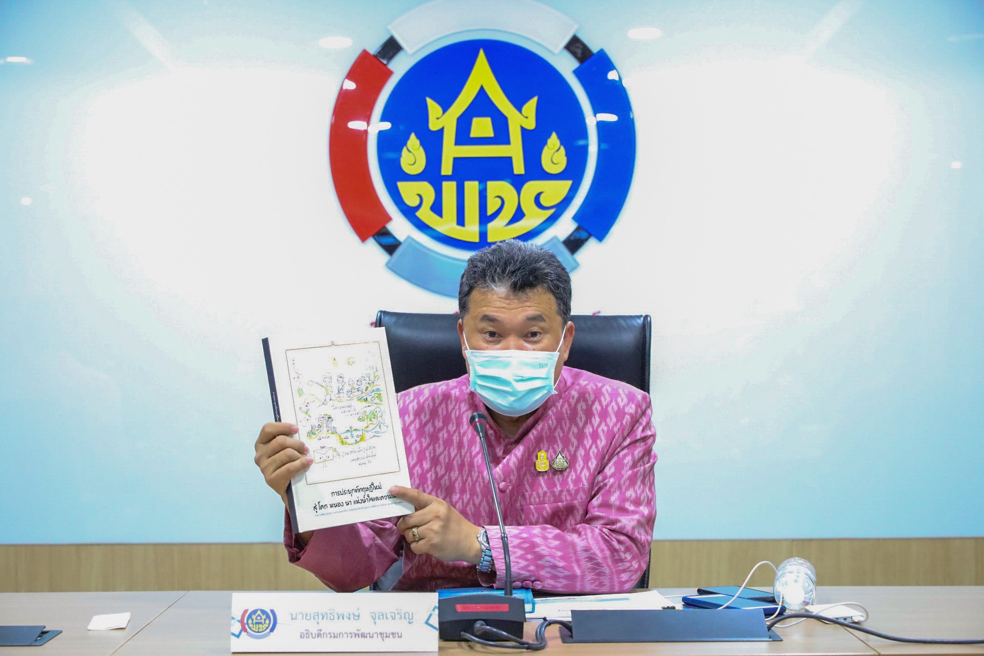 นายสุทธิพงษ์ จุลเจริญ อธิบดีกรมการพัฒนาชุมชน กล่าวว่า “พระบาทสมเด็จพระวชิรเกล้าเจ้าอยู่หัว ทรงมีพระราชปณิธานในการสืบสาน รักษา ต่อยอดแนวทางพระราชดำริ ปรัชญาของเศรษฐกิจพอเพียง และทฤษฎีใหม่ของพระบาทสมเด็จพระบรมชนกาธิเบศร มหาภูมิพลอดุลยเดชมหาราช บรมนาถบพิตร ไปสู่การสร้างคุณภาพชีวิตที่ดีของพี่น้องชาวไทยอย่างยั่งยืน โดยพระองค์ได้ทรงพระกรุณาพระราชทานโครงการ “โคก หนอง นา แห่งน้ำใจและความหวัง” และภาพวาดฝีพระหัตถ์ซึ่งบอกเล่าเรื่องราวความสุข ความหวัง ความรัก และความสามัคคี ที่เกิดขึ้นในครอบครัว อันเป็นเครื่องยืนยันถึงพระราชหฤทัยและสายพระเนตรอันยาวไกลที่ทรงห่วงใยต่อพสกนิกรทุกหมู่เหล่าของพระองค์ โดยมีพระบรมราโชบายให้เกิดความยั่งยืน ด้วยการประกอบสัมมาอาชีพได้อย่างพอเพียง