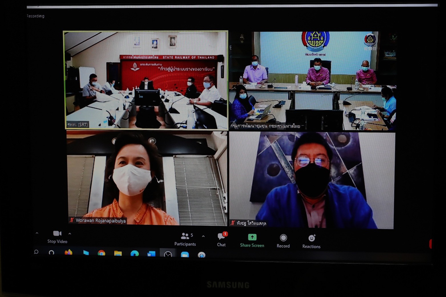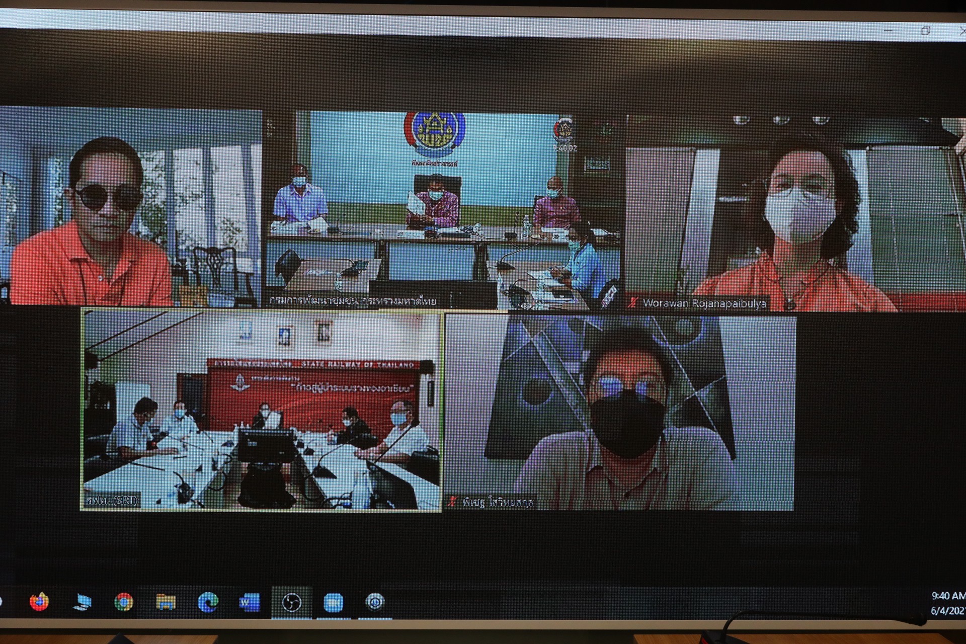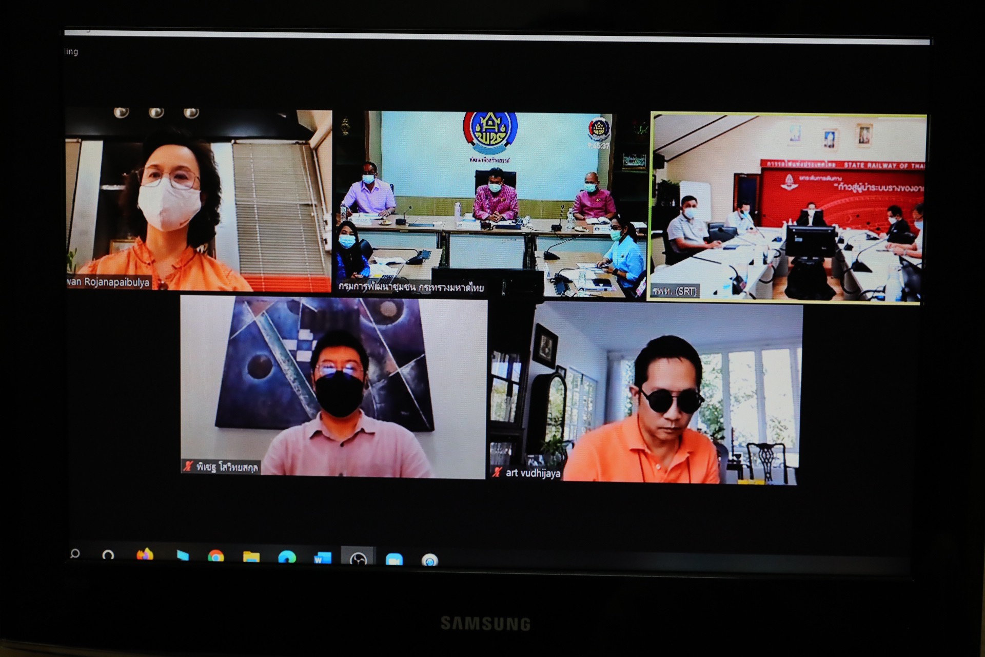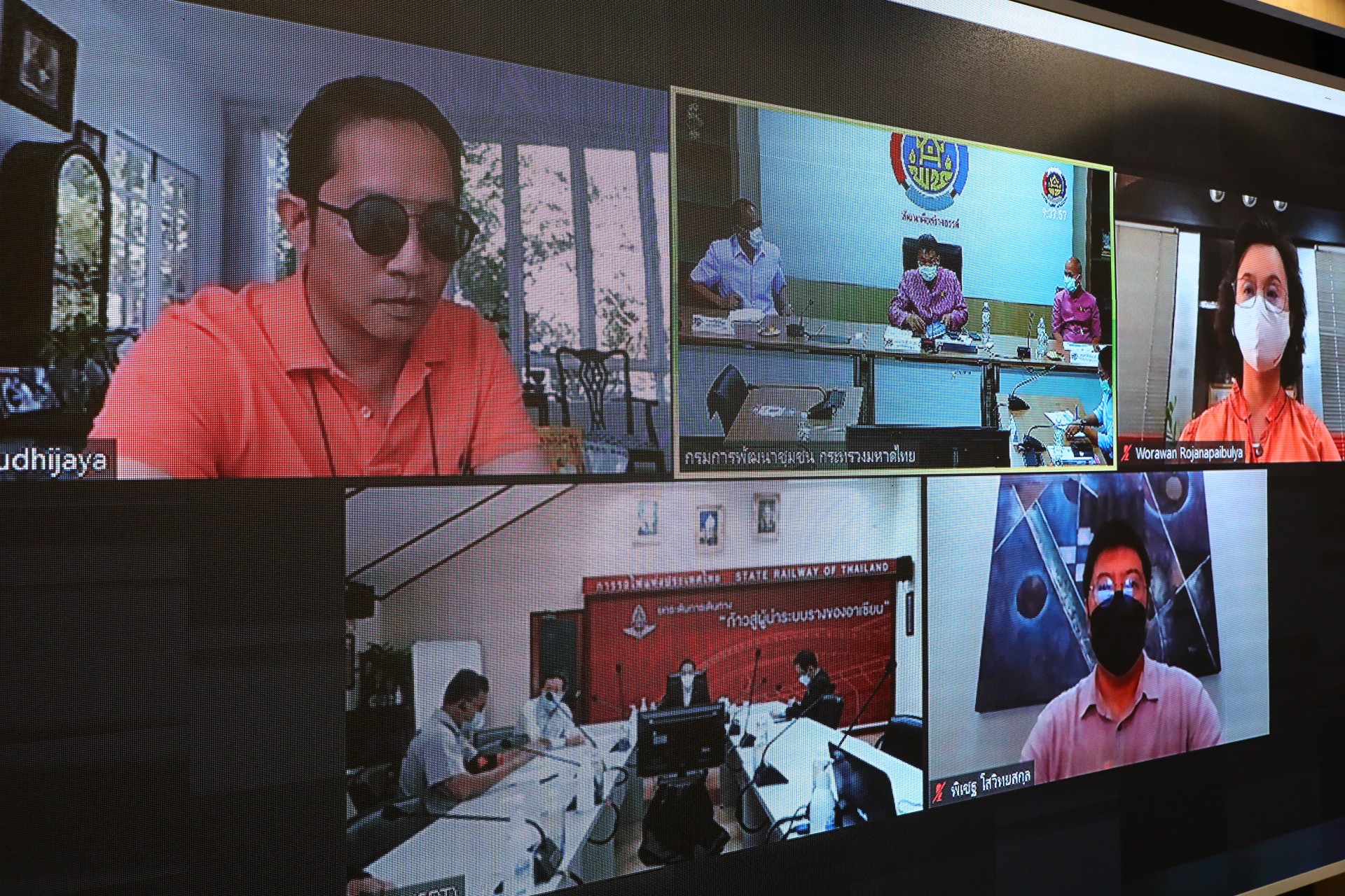 นายสุทธิพงษ์ จุลเจริญ อธิบดีกรมการพัฒนาชุมชน กระทรวงมหาดไทย และ นายนิรุฒ มณีพันธ์ ผู้ว่าการรถไฟแห่งประเทศไทย (รฟท.) หารือการดำเนินงานโครงการพัฒนาพื้นที่ต้นแบบการพัฒนาคุณภาพชีวิตตามหลักทฤษฎีใหม่ ประยุกต์สู่ “โคก หนอง นา โมเดล” ระหว่างกรมการพัฒนาชุมชน และ การรถไฟแห่งประเทศไทย โดยมี นายสุรศักดิ์ อักษรกุล รองอธิบดีกรมการพัฒนาชุมชน นายธนวัฒน์ ปิ่นแก้ว ผู้อำนวยการสถาบันการพัฒนาชุมชน นางสาวนิภา ทองก้อน ผู้อำนวยการสำนักเสริมสร้างความเข้มแข็งชุมชน รศ.วรวรรณ โรจนไพบูลย์ ผศ.พิเชฐ โสวิทยสกุล ที่ปรึกษาอธิบดีกรมการพัฒนาชุมชน และผู้บริหาร กรมการพัฒนาชุมชน พร้อมด้วย นายไพบูลย์ สุจิรังกุล วิศวกรใหญ่ฝ่ายการช่างโยธา และคณะผู้บริหารการรถไฟแห่งประเทศไทย , มล. อภิชิต วุฒิชัย ร่วมในการประชุม ผ่านระบบวีดิทัศน์ทางไกล (video conference) ด้วยโปรแกรม zoom cloud meeting